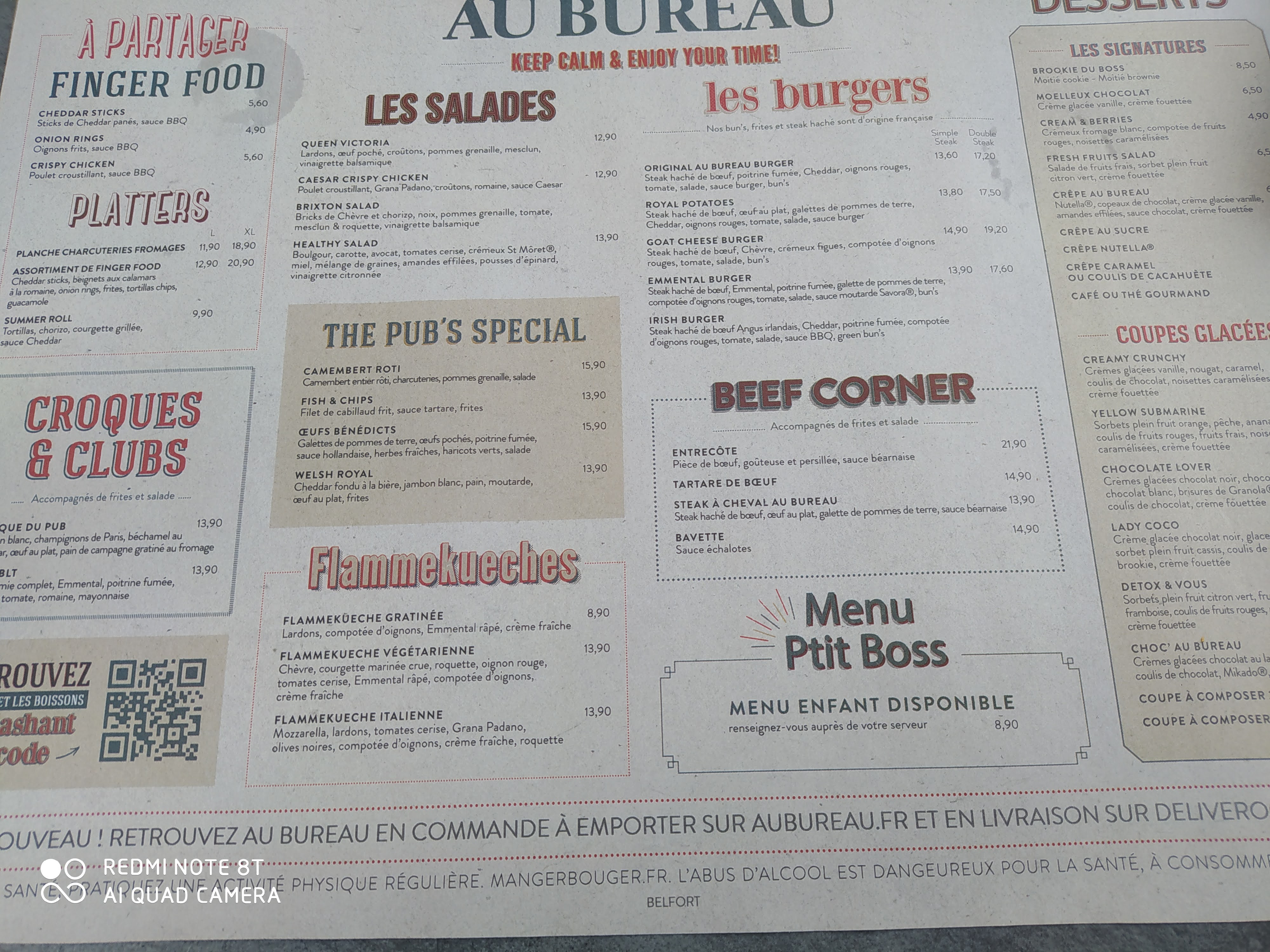 J’ai l’habitude de venir dans la franchise Au Bureau et je suis globalement très satisfait en général. Ce restaurant la est aussi très bien. Les plats sont toujours aussi bons, dans des quantités suffisantes. Le seul petit point faible c’est le service qui est un peu plus lent que d’habitude (bon il y avait quand même des événements sur Belfort, donc le restaurant était plein). Je vous conseille tout de même d’aller dans ce restaurant !