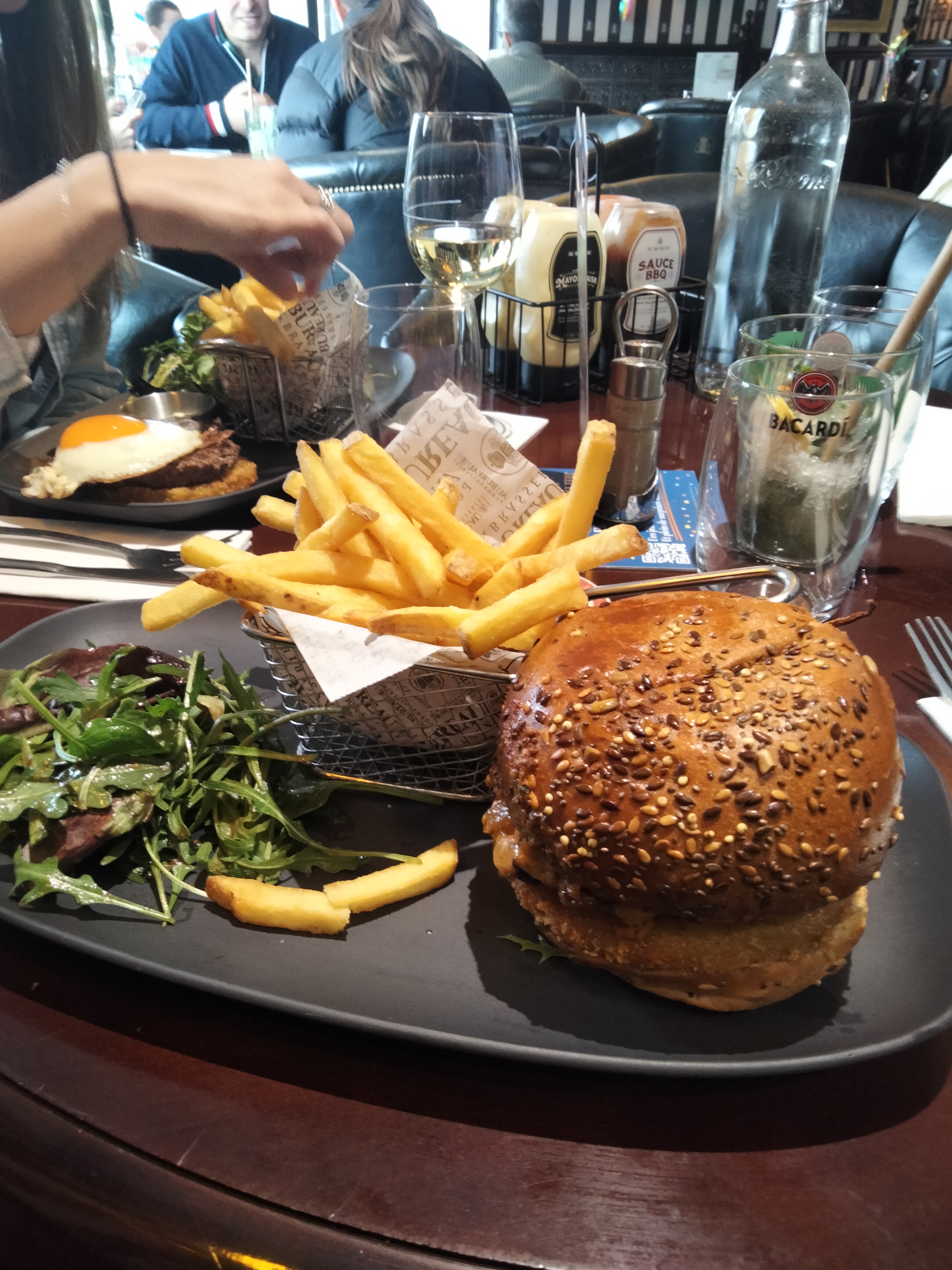 Service très (trop) rapide, à peine servis des apéritifs les plats ont été amenés aussi. La serveuse s'est excusée. On est arrivé à 19h et reparti à 20h, dommage. Les burgers sont bons mais rien d'extraordinaire non plus, du coup on a trouvé que c'est devenu cher.