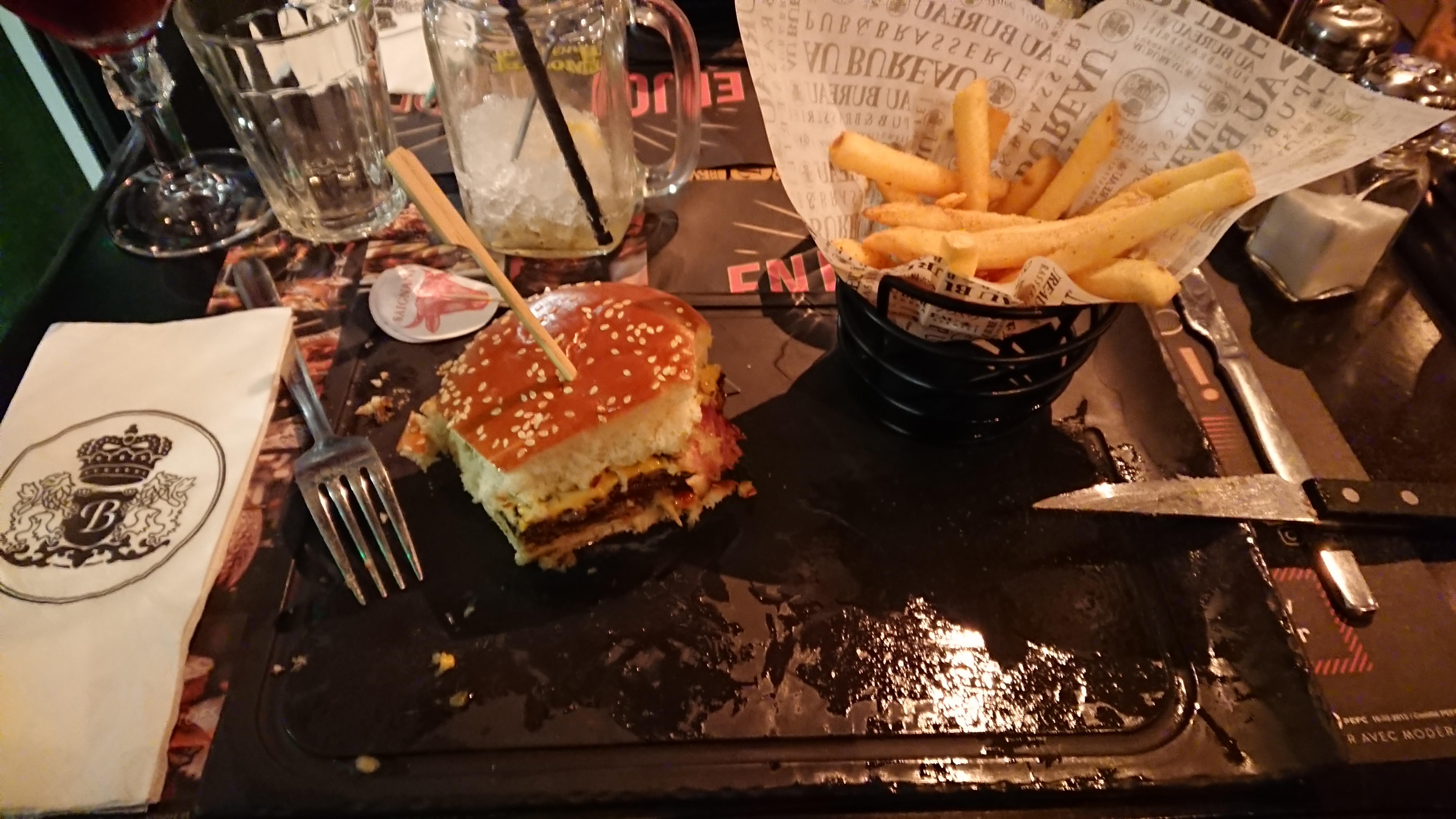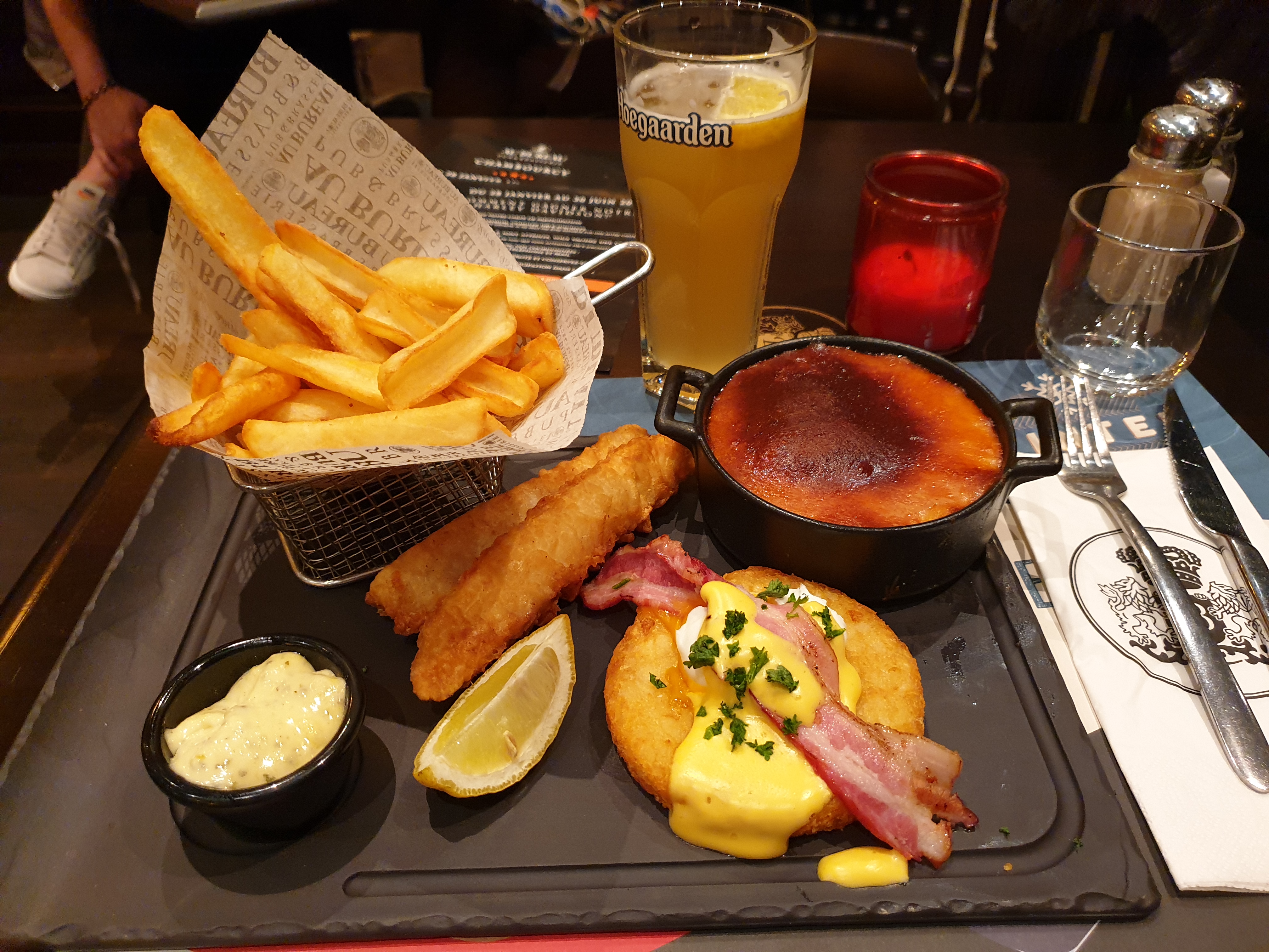 Une cuisine faite essentiellement d'assemblage (Burger, salades, fish & chips, flammenkuche, etc...) qui a le mérite de remplir l'estomac, mais ne pas s'attendre à des sommets culinaires. Restaurant quasi plein un jeudi soir, mais possibilité d'avoir une conversation sans hurler. Pas compris la diffusion de match de tennis sur 2 ou 3 grands écrans, un peu décalé par rapport au style du restaurant qui se veut proche d'un pub anglais.