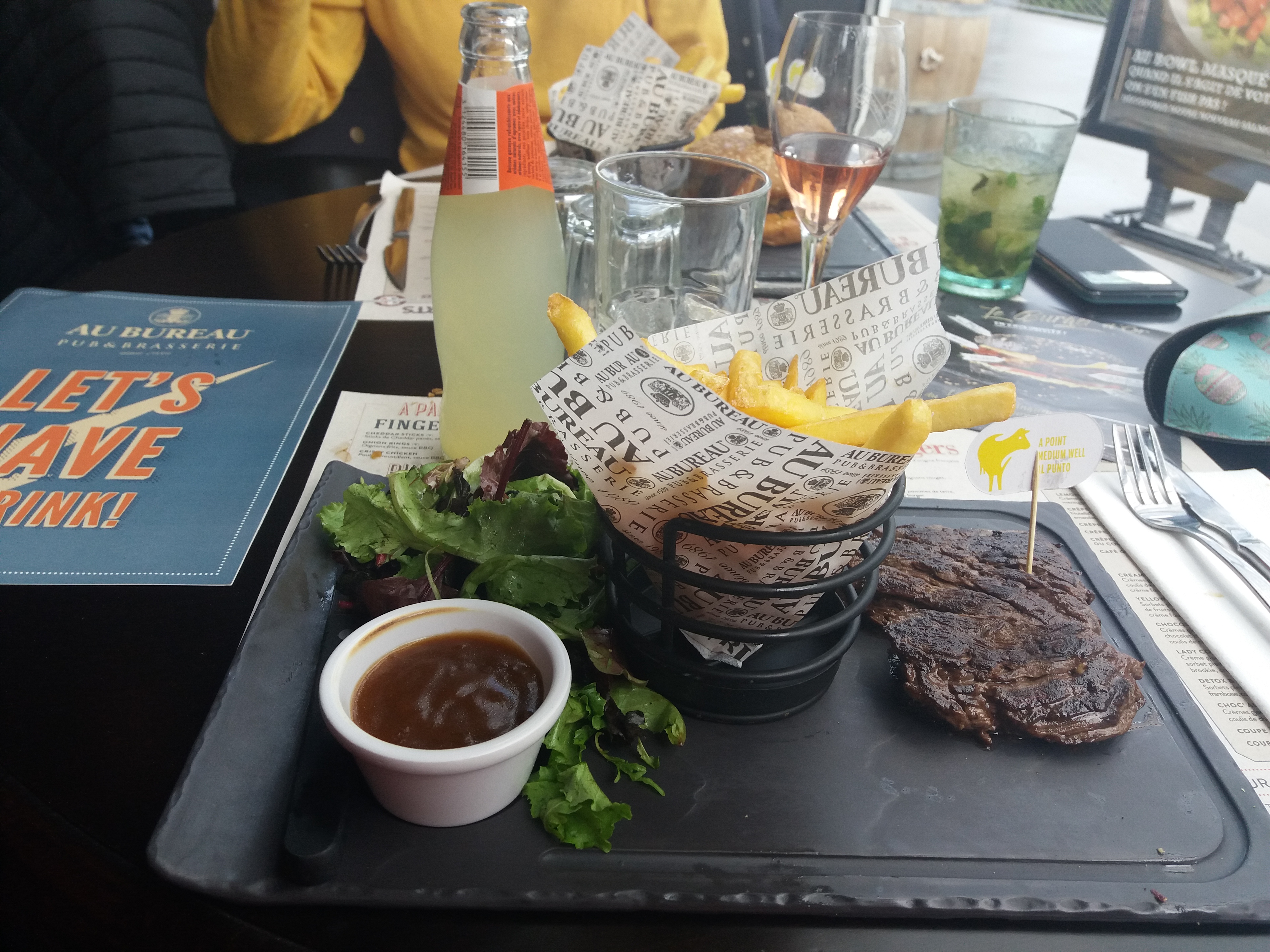 Bonjour, mon mari et moi, nous avons mangé au Bureau nous sommes satisfait de notre déjeuner. C'était un mardi midi, il y avait pas mal de clients, nous avons remarqué que le service était correct, les plats étaient bien préparés, bonne cuisson, la viande était tendre. Bravo les personnes. Nous reviendrons !