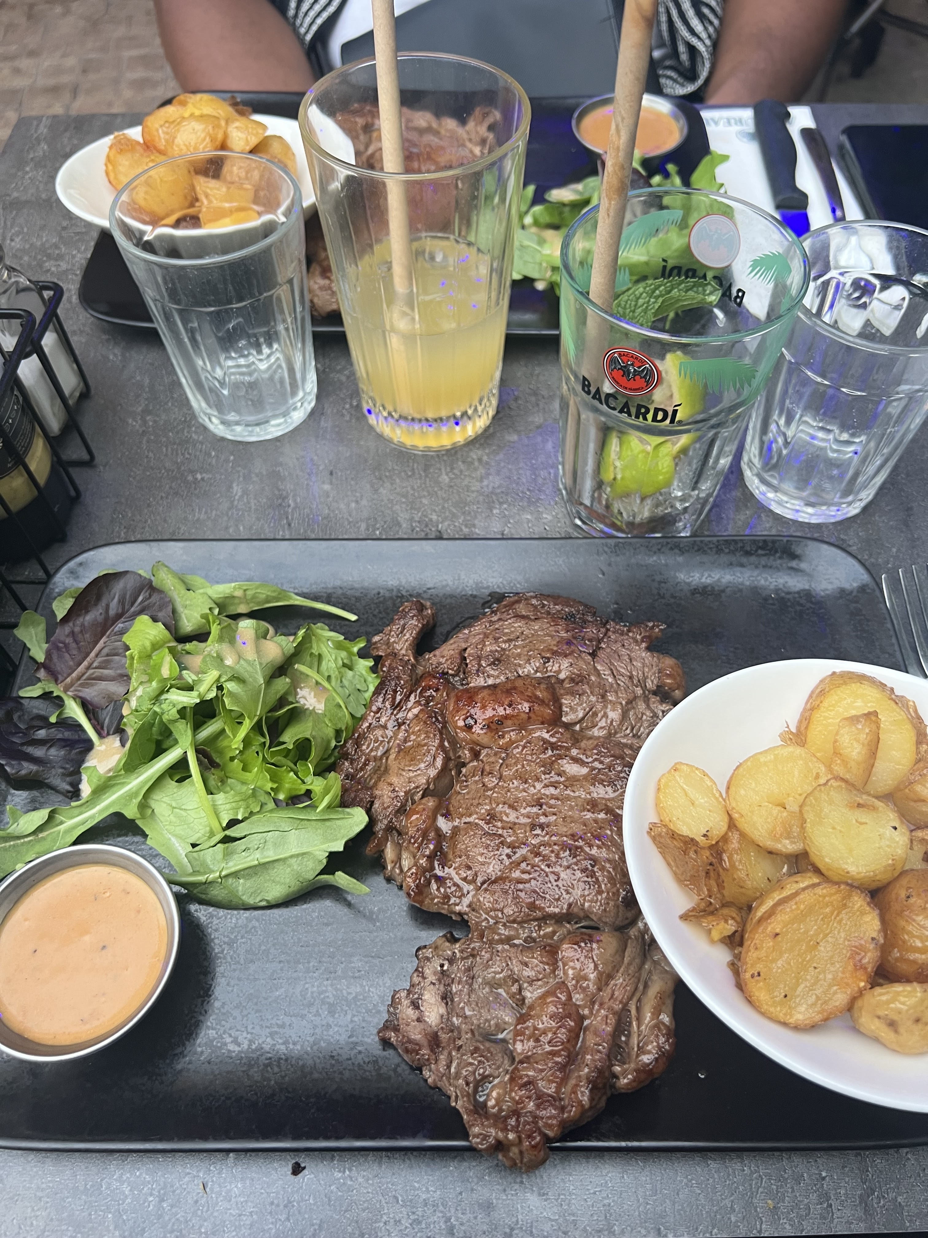Passage éclair pour decouvrir. Nous n'y avons que pris deux boissons. Après une prise de commande au bar compliquée, nous nous sommes installer en terrasse. Ce n'est qu'après une attente d'une demi heure presque trois quarts d'heure que nous sommes aller voir où en était notre commande pour s'apercevoir que le serveur nous avait tout supplément oublier. Même nos visages lui était inconnu... Plutôt moyen... Nous n'avons pas manger là-bas donc je ne posterais aucuns avis dessus, les plats que nous avons croiser avaient juste l'air bon, du moins le visuel.