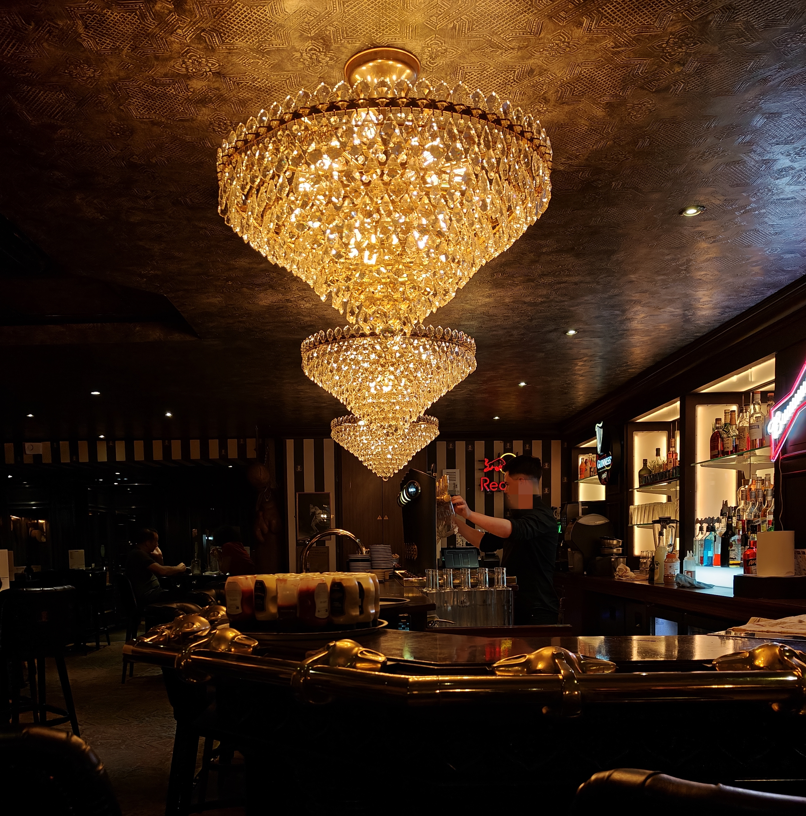 Après 195 notes sur Google c'est l'une des pires.... C'est dommage, la déco est super sympa et donne envie. J'y suis allé uniquement pour boire un verre et le problème est que le service est pitoyable, entre la patronne qui parle mal a ses employés avec des Tu es sourd ou quoi, ou encore refuser des personnes visiblement sur le physique.... Honteux. Le personnel qui se balade dans le bar en permanence avec des t-shirts rouges flash le tout sans vraiment accueillir les clients c'est pas terrible. Sinon, 2 cocktails commandés, 1 très bon et l'autre très moyen. Le bar a du potentiel, bon courage.