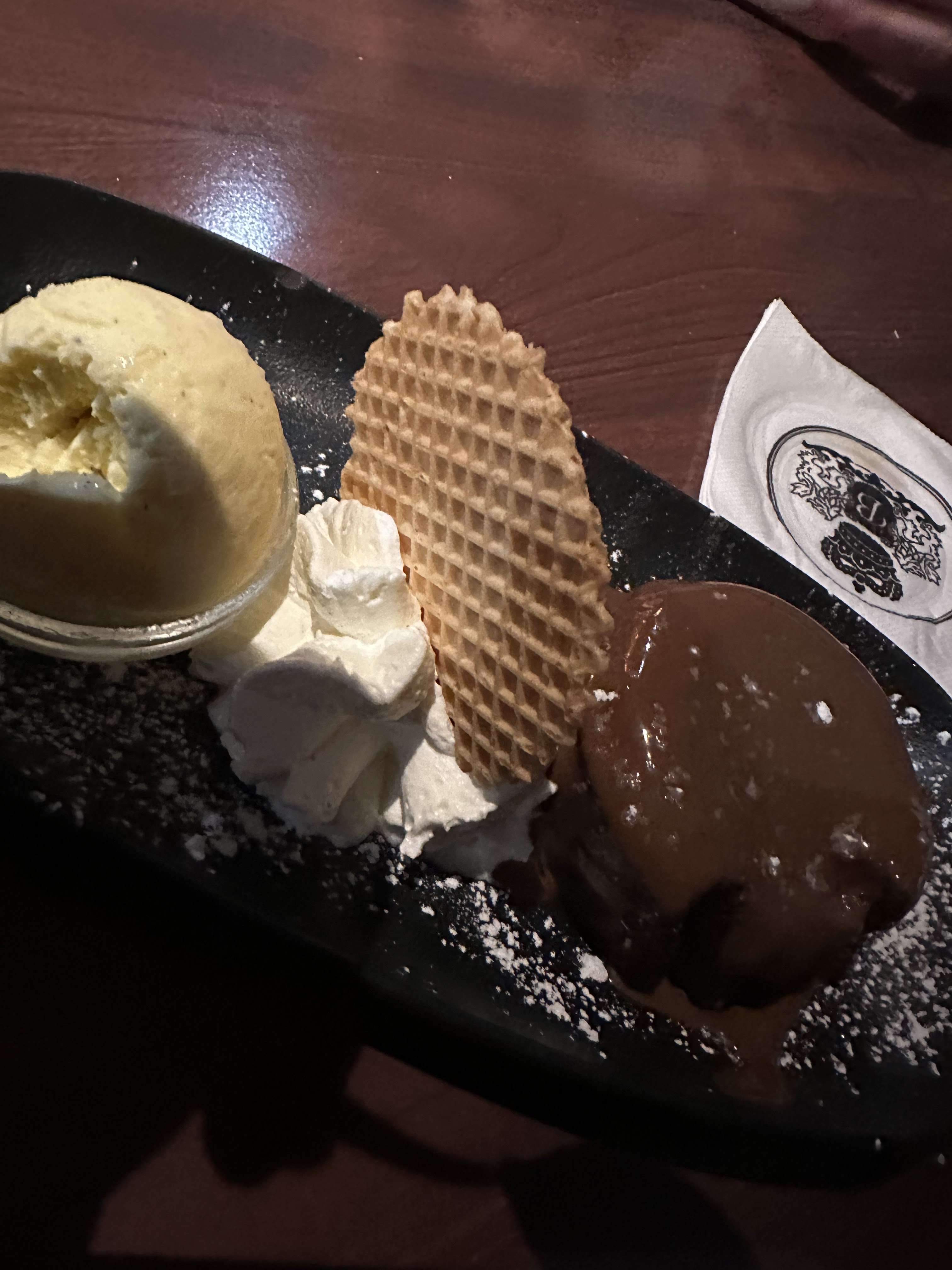 Très bon moment, le repas était excellent. Mention spéciale pour ce cookie incroyablement bon et gourmand! Une étoile en moins pour l’attente qui se fait parfois très longue.. Je recommande tout de même! :)