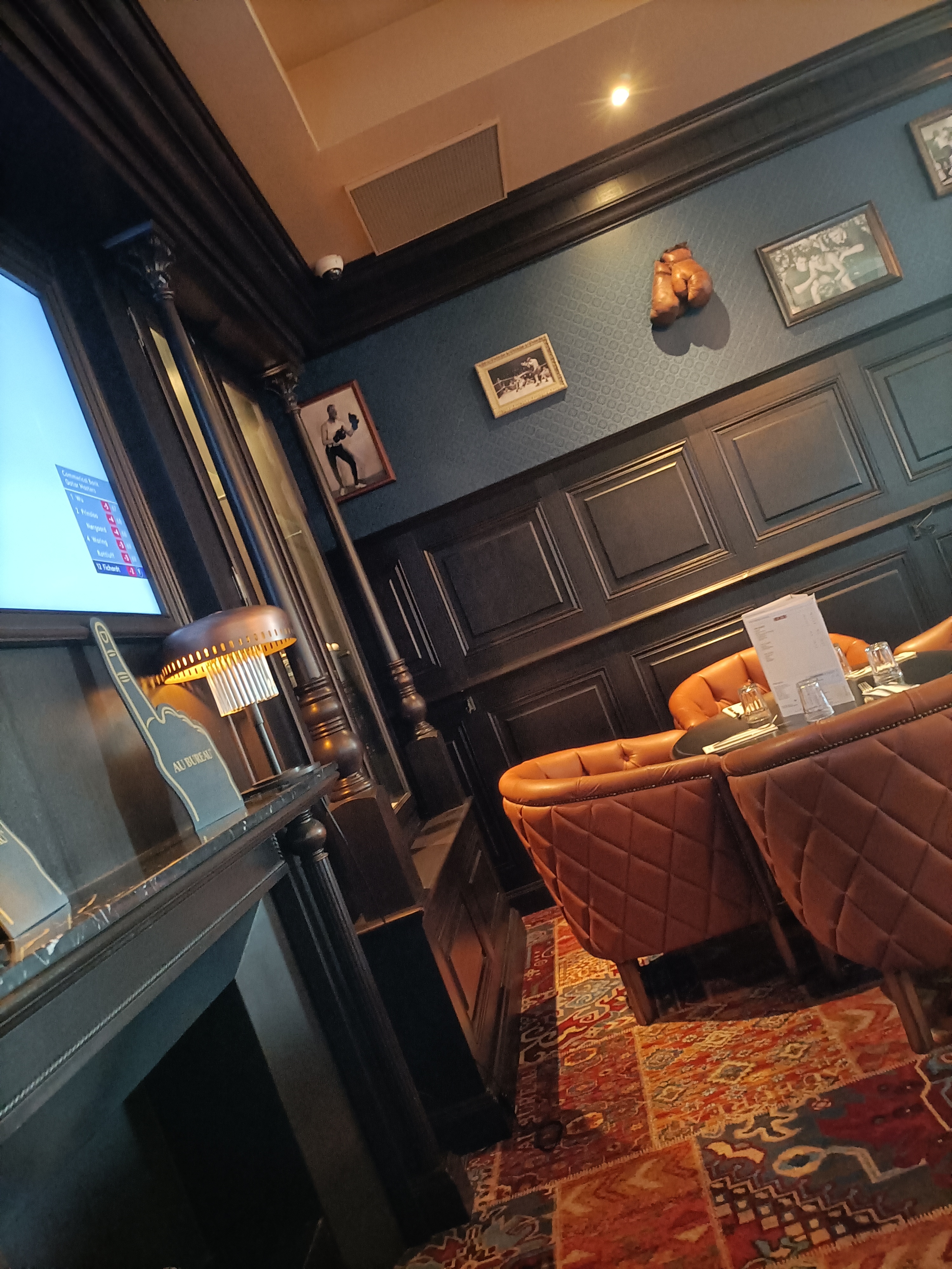 Ambiance très agréable, dédiée aux sports avec quelques clins d'oeil, on s y sent bien, détendu. Service impeccable, cocktail ou plutôt mocktail à tomber
