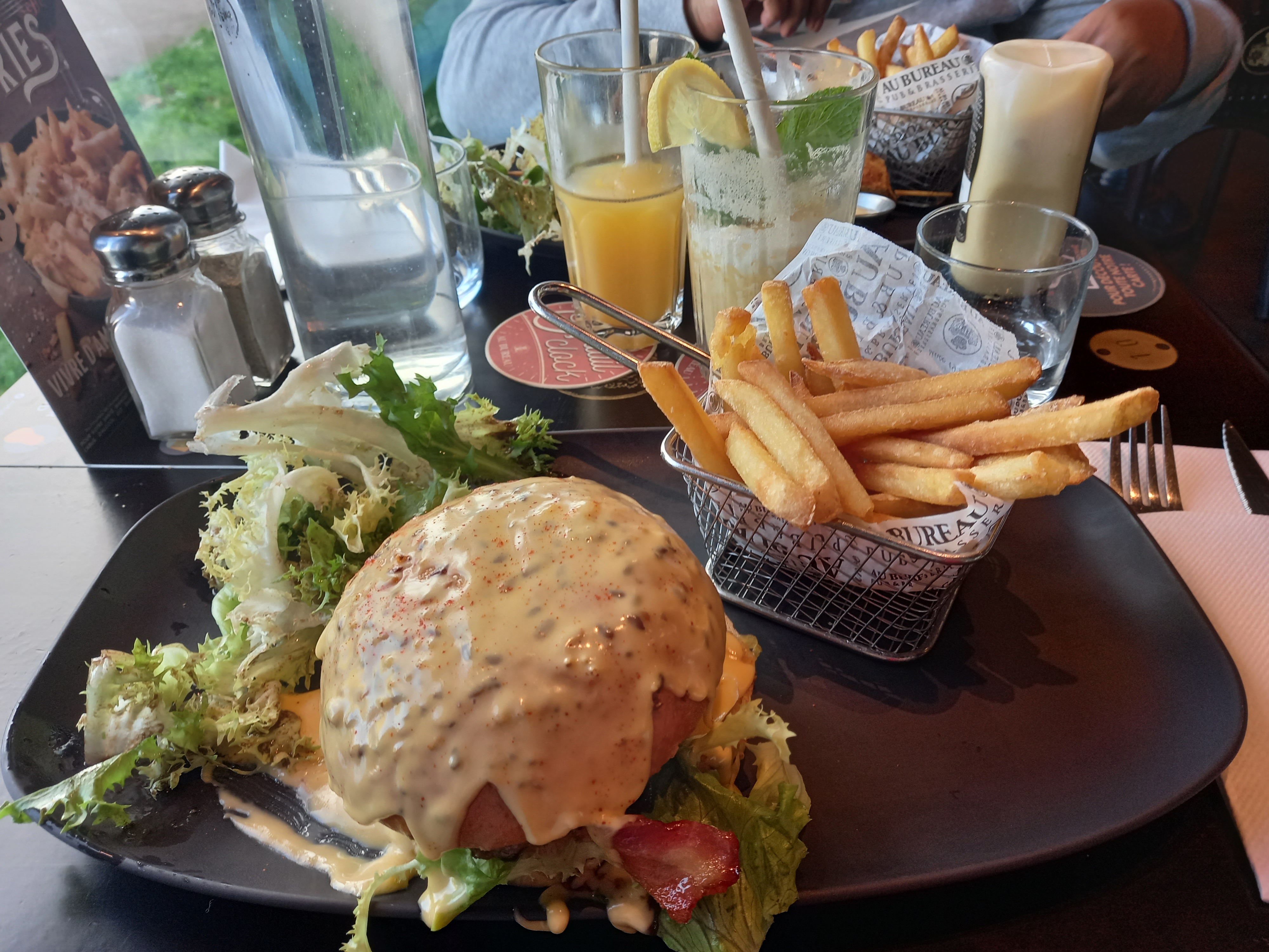 Le restaurant en lui même est magnifique, très belle déco et beaux meubles. Après concernant le service... temps d'attente assez long, obligé de rappeler au serveur que le plateau apéritif n'est toujours pas arrivé alors que les boissons sont arrivées depuis 15 min. Concernant la nourriture les burgers étaient vraiment délicieux c'est vrai, les frites idem. Par contre la salade d'accompagnement pas bonne, salade en sachet je pense. Et pour les desserts : déçu. J'ai compris pourquoi les clients partaient tous sans prendre de desserts. Normalement c'est la touche finale qui vient clôturé un bon repas. J'aurai su je n'aurai pas pris de dessert, c'était même écœurant. Désolé.