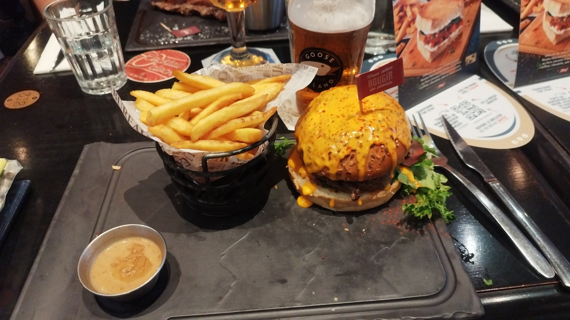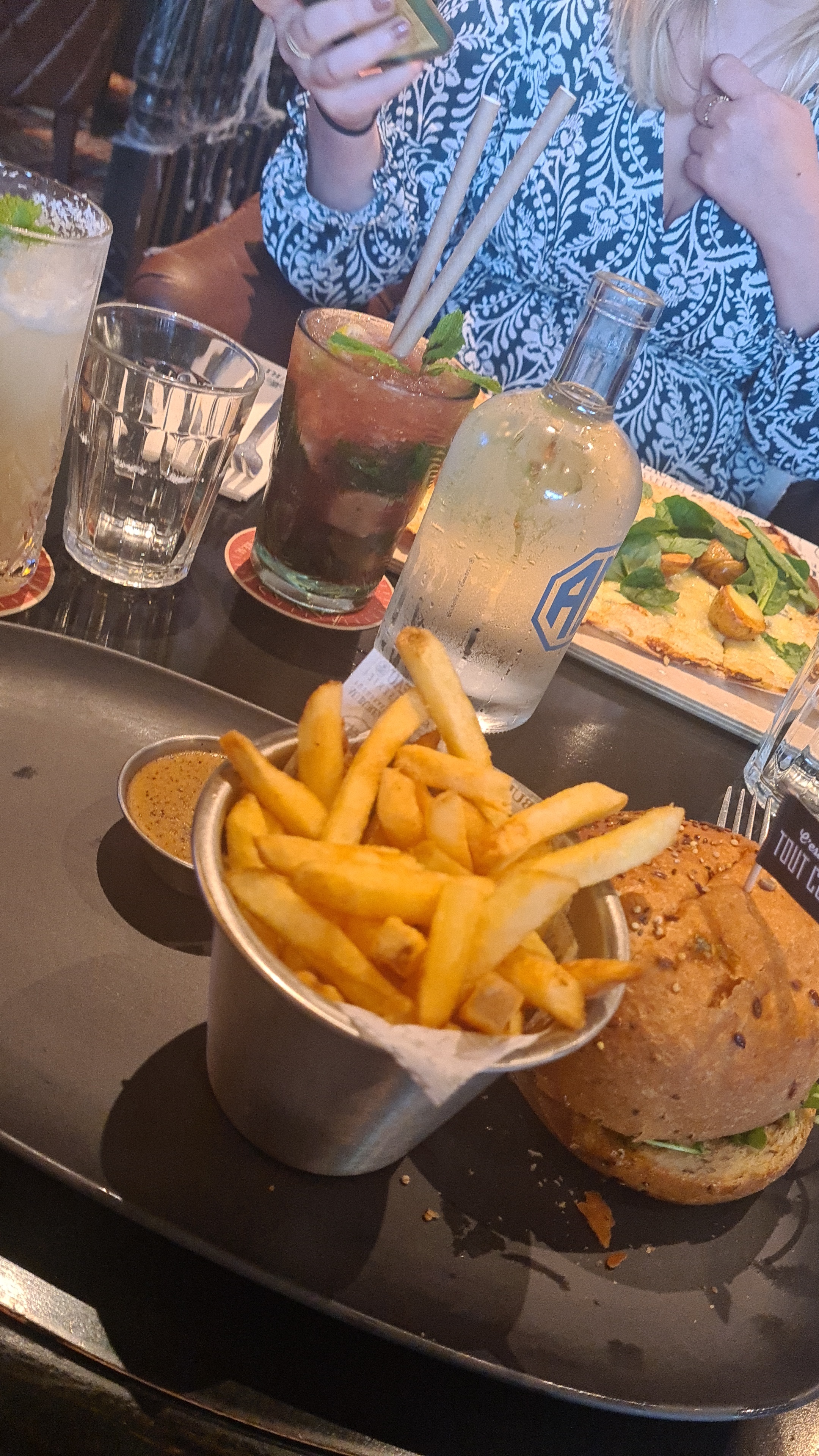 Très bon burger, la cuisson saignante n'a pas été réussi malheureusement mais s'était bon quand même et les cocktail 🍸 hummmm je salive encore