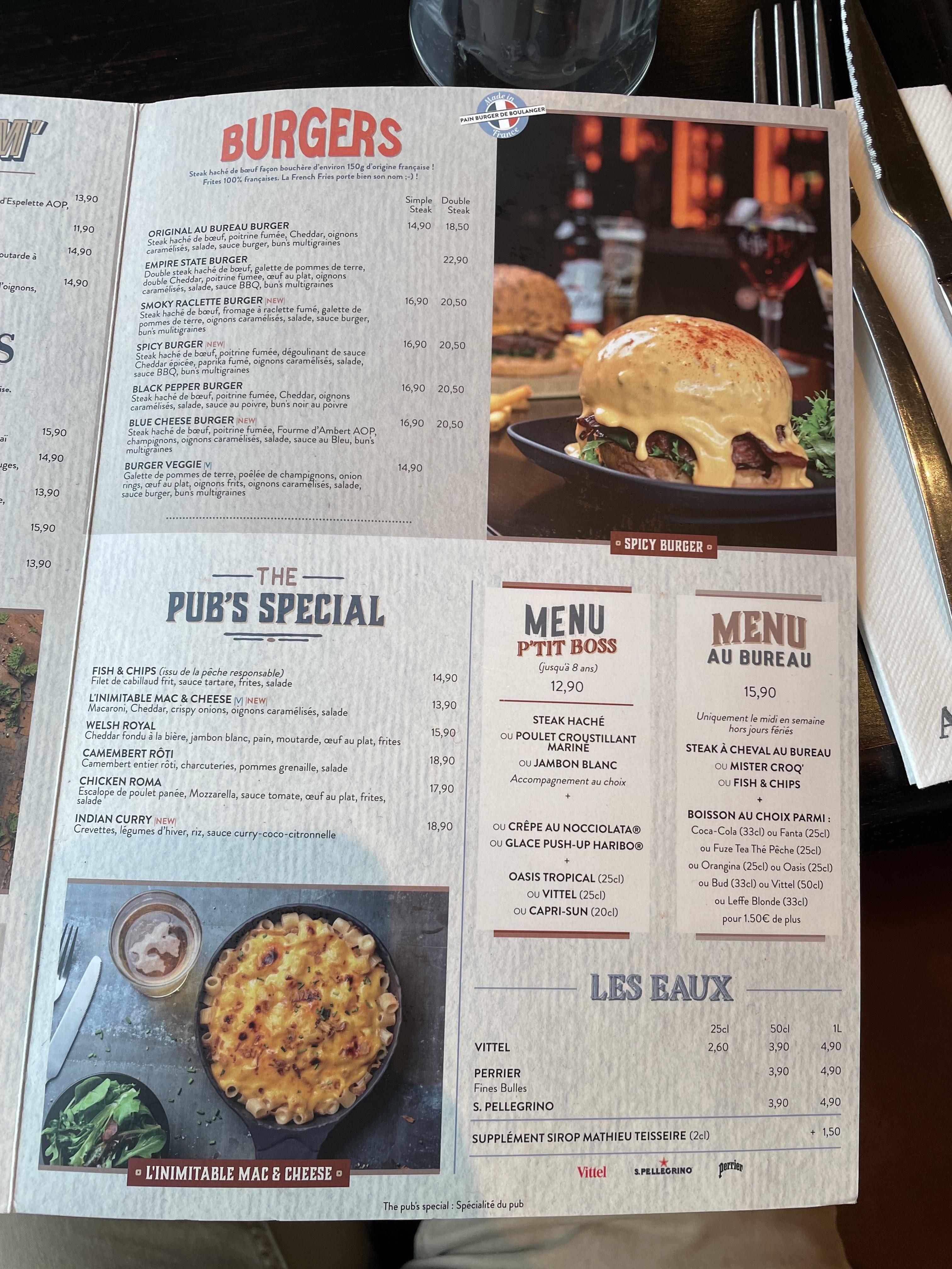 Très bon accueil au Bureau, chaque employé a le sourire, ce qui rend l’endroit convivial. Notre serveuse avait vêtu un uniforme de cirque pour une ambiance très sympa. Elle a été formidable, je l’a remercie. Plats copieux et service rapide.