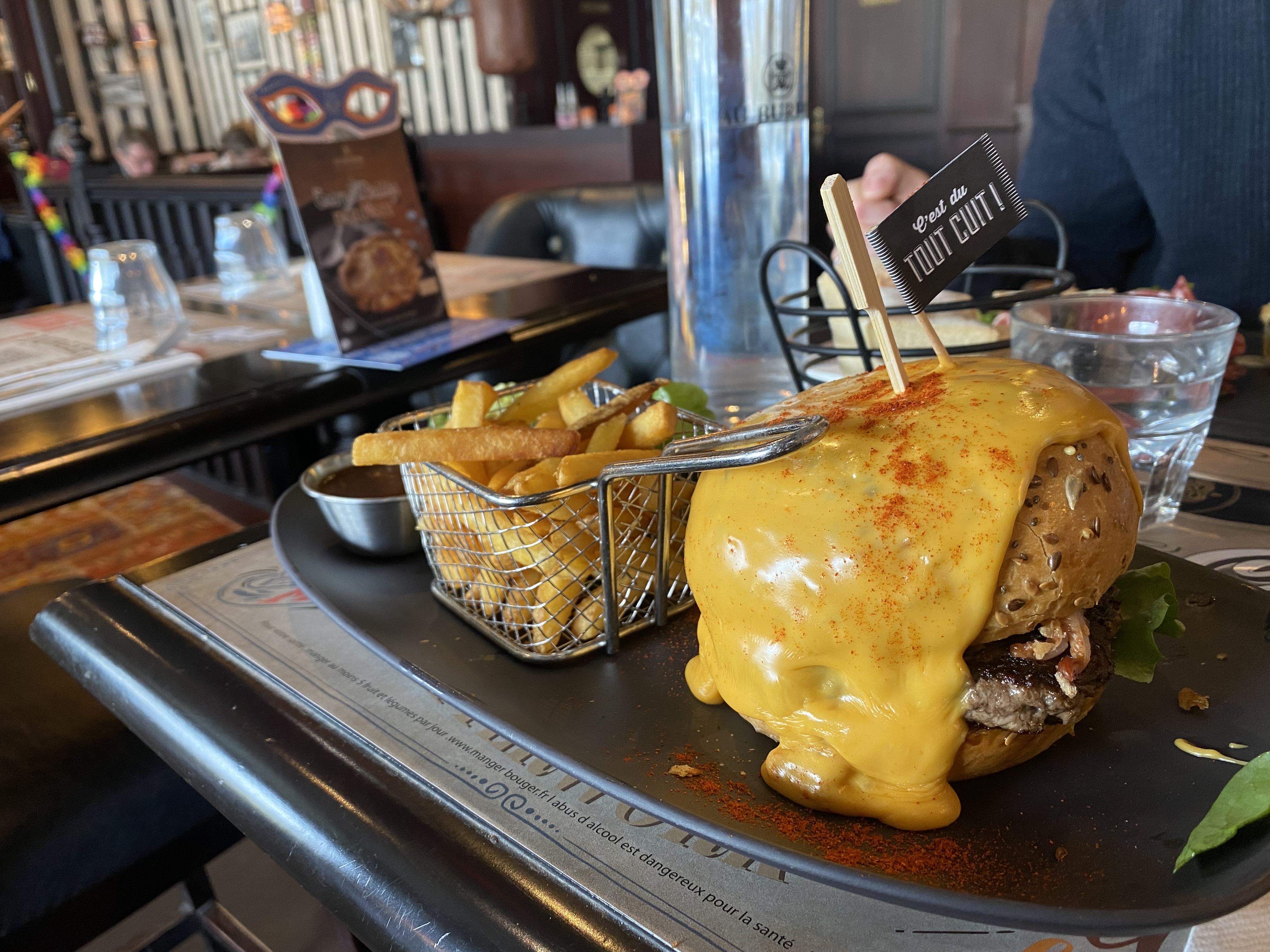 Bavette caoutchouteuse, pas de chance... Frites bonnes. Le service est chaleureux, le décor du restaurant est magnifique!