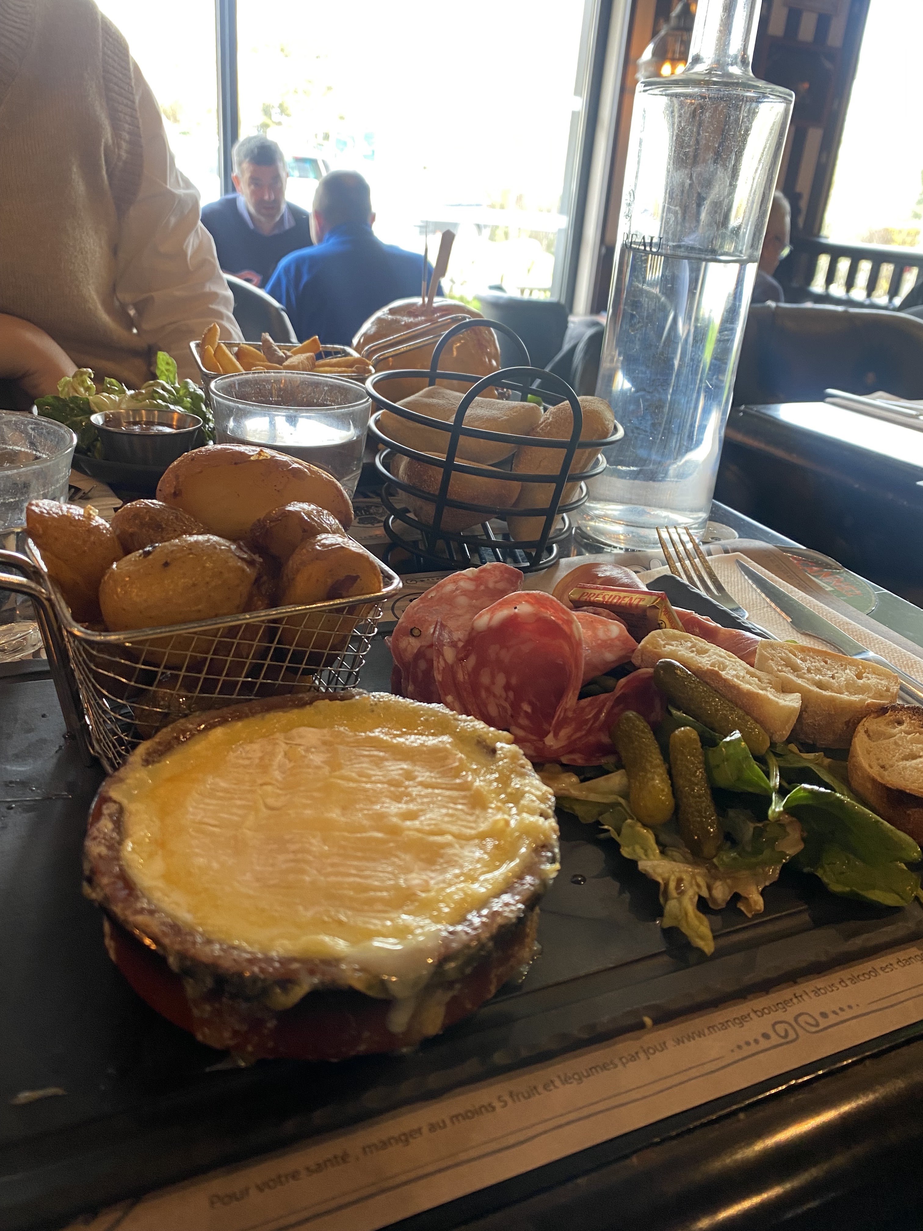 Camembert rôti fade (manque de caractère ?) mais belle garniture et pomme grenaille fondante ! Café servi à peine tiède. Autrement bonne ambiance, personnel souriant et agréable et prix raisonnable.