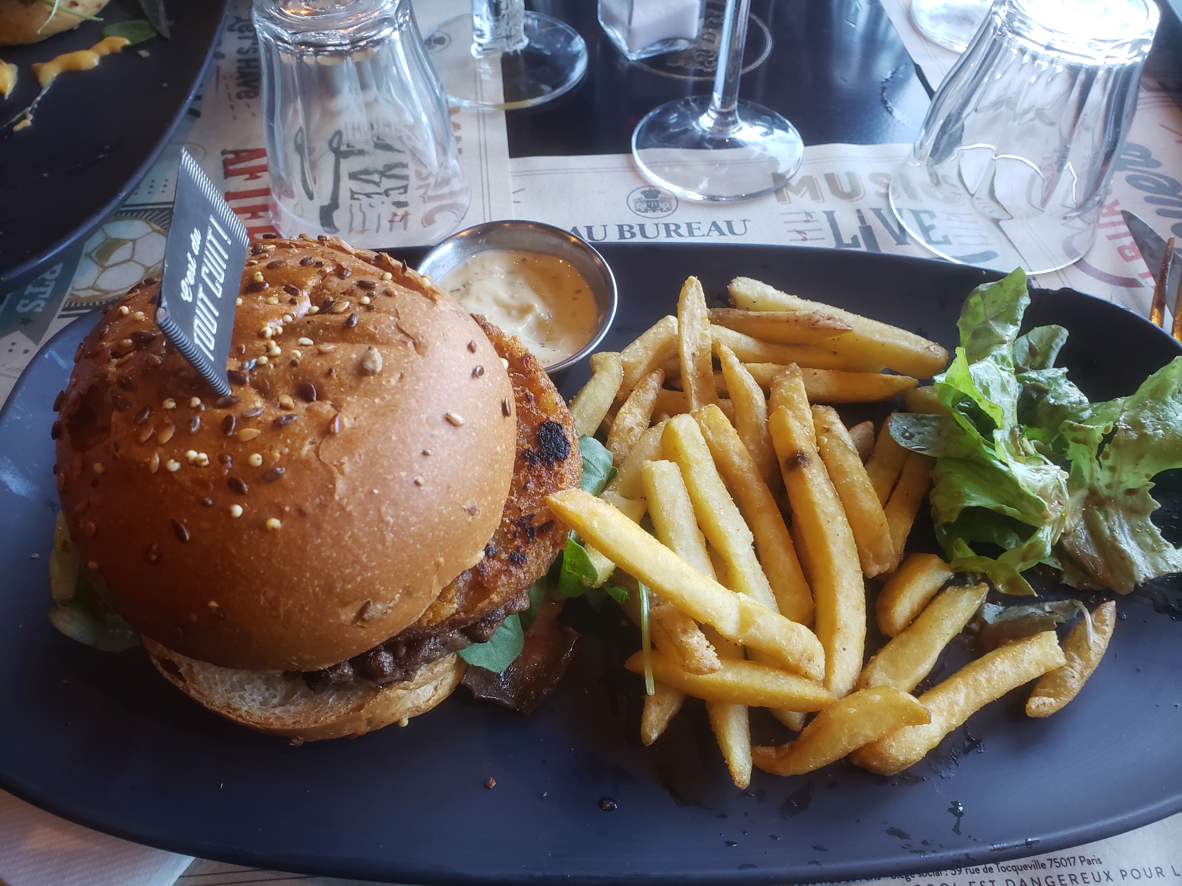 Le plateau était vraiment bon, le burger un peu décevant malheureusement mais le dessert fait remonter lui aussi la note ! Un bon moment en perspective avec des serveurs agréables et une bonne ambiance.