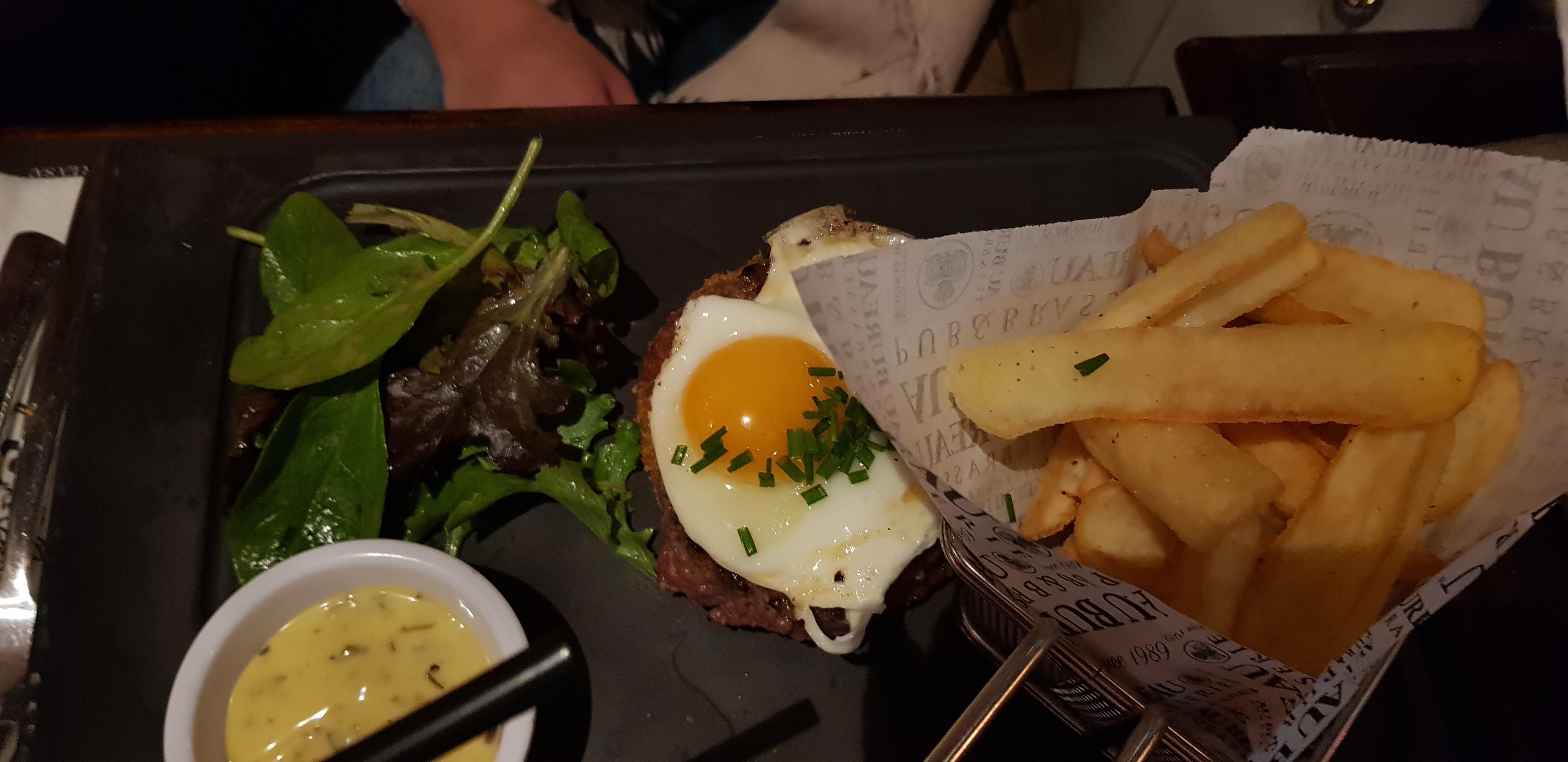 Le personnel est aimable, souriant, accueillant, et le lieu est agréable et propre. Les 3 burgers testés ont été appréciés, j'ai bien aimé le carpaccio de bœuf , et l'entrecôte, était généreuse et bonne (par contre, j'ai dû demander un couteau qui coupe). Les frites sont bonnes aussi, croustillantes et moelleuses en même temps. La portion peut paraître petite mais en fait, elle s'est révélée suffisante. La carte est relativement variée et peut satisfaire à suffisamment de monde. Niveau boissons, par contre, notamment pour les bières, pour moi, le choix est plutôt limité, . Après, c'est sûr, ce n'est pas un bar à bières non plus, et il y a de quoi trouver quelque chose qui plaise quand même. Vous pouvez y aller, vous ne devriez, normalement, pas être déçus.