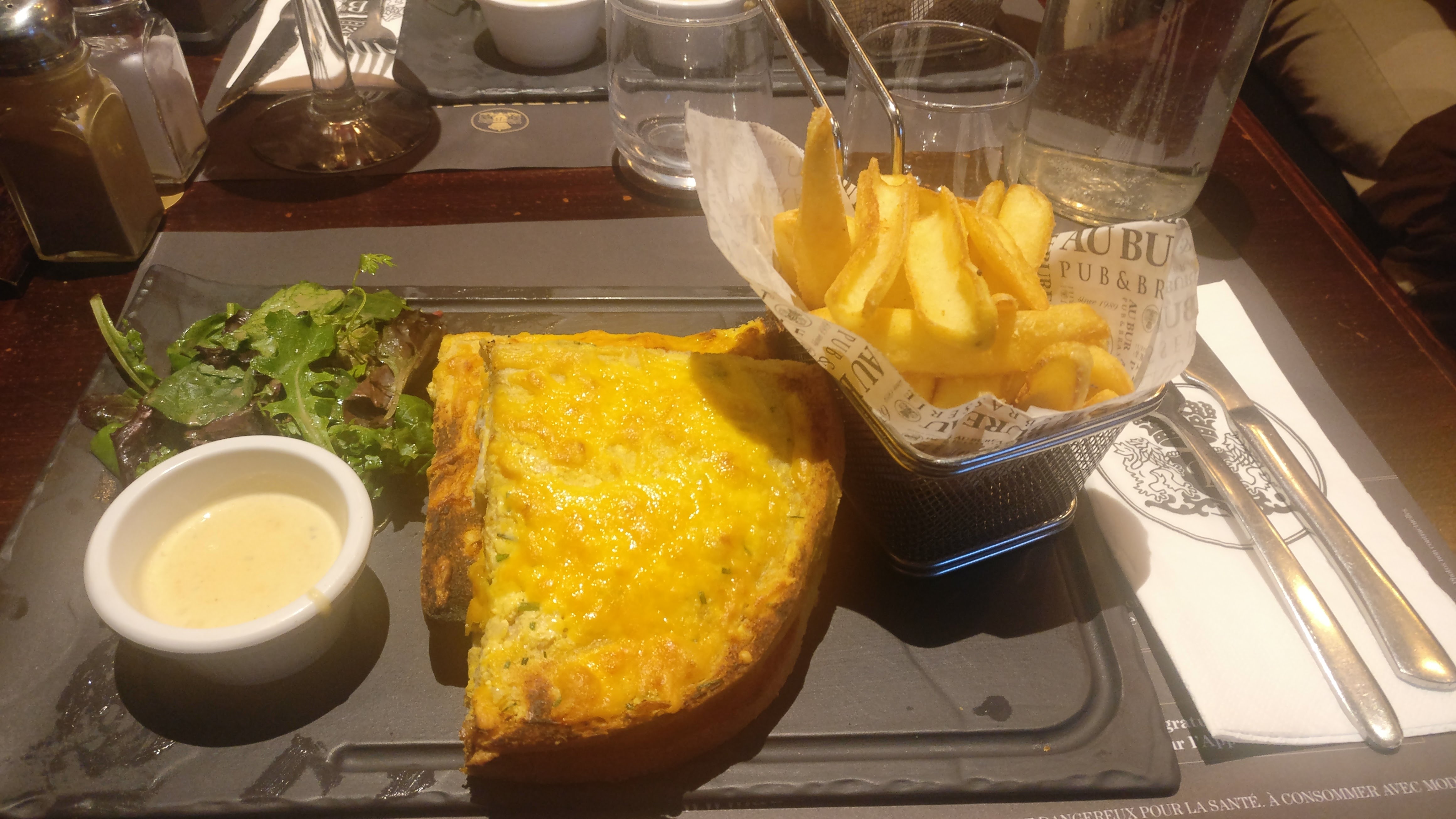 J'ai pris un welsh, qui devait être imbibé de bière mais qui était tout sec. La serveuse se renseigne et revient me confirmé que ce n'était pas normal. Elle demande au chef pour faire un geste et il lui répond m'offrir un café au bar en dédommagement (je ne bois pas de café) Très déçu de ce restaurant , qui en plus en vraiment très bruyant.