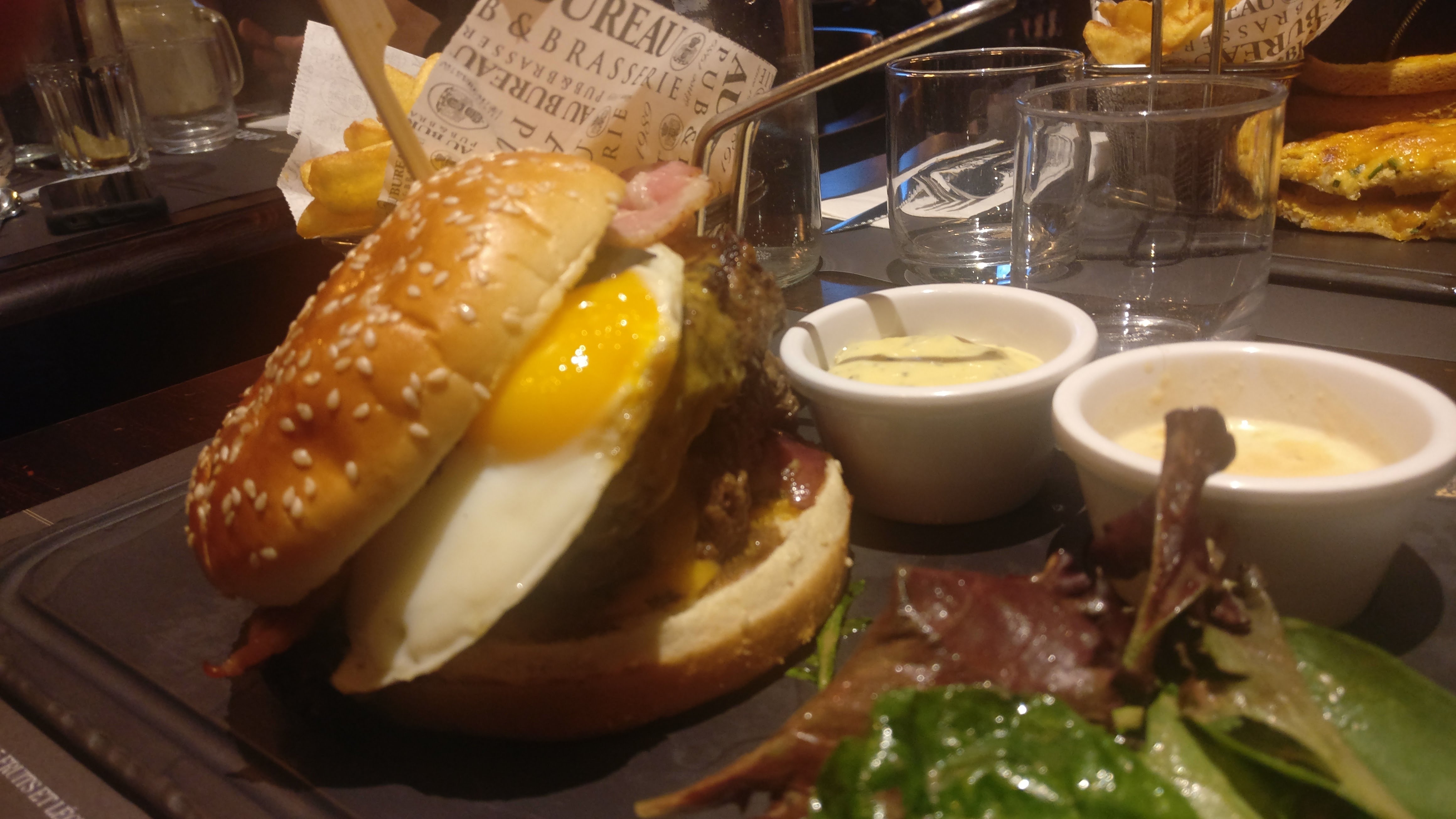 Un établissement de la chaîne Au Bureau tout à fait habituel. Nous avons été accueilli froidement car nous sommes passé par la terrasse et non par la porte alors vous comprenez on ne s'en sort plus ... ça refroidit, alors même que la terrasse offre une entrée tout à fait empruntable. Bref, erreur de notre part. Salle agréable bien qu'un peu bruyante, service long (nous étions le galop d'essai d'un nouvel élément, donc pas de soucis de ce côté là). Nourriture sans grande recherche, portions un peu légère et goût fade. Une bonne sympathie de l'équipe lors de notre départ et du paiement.