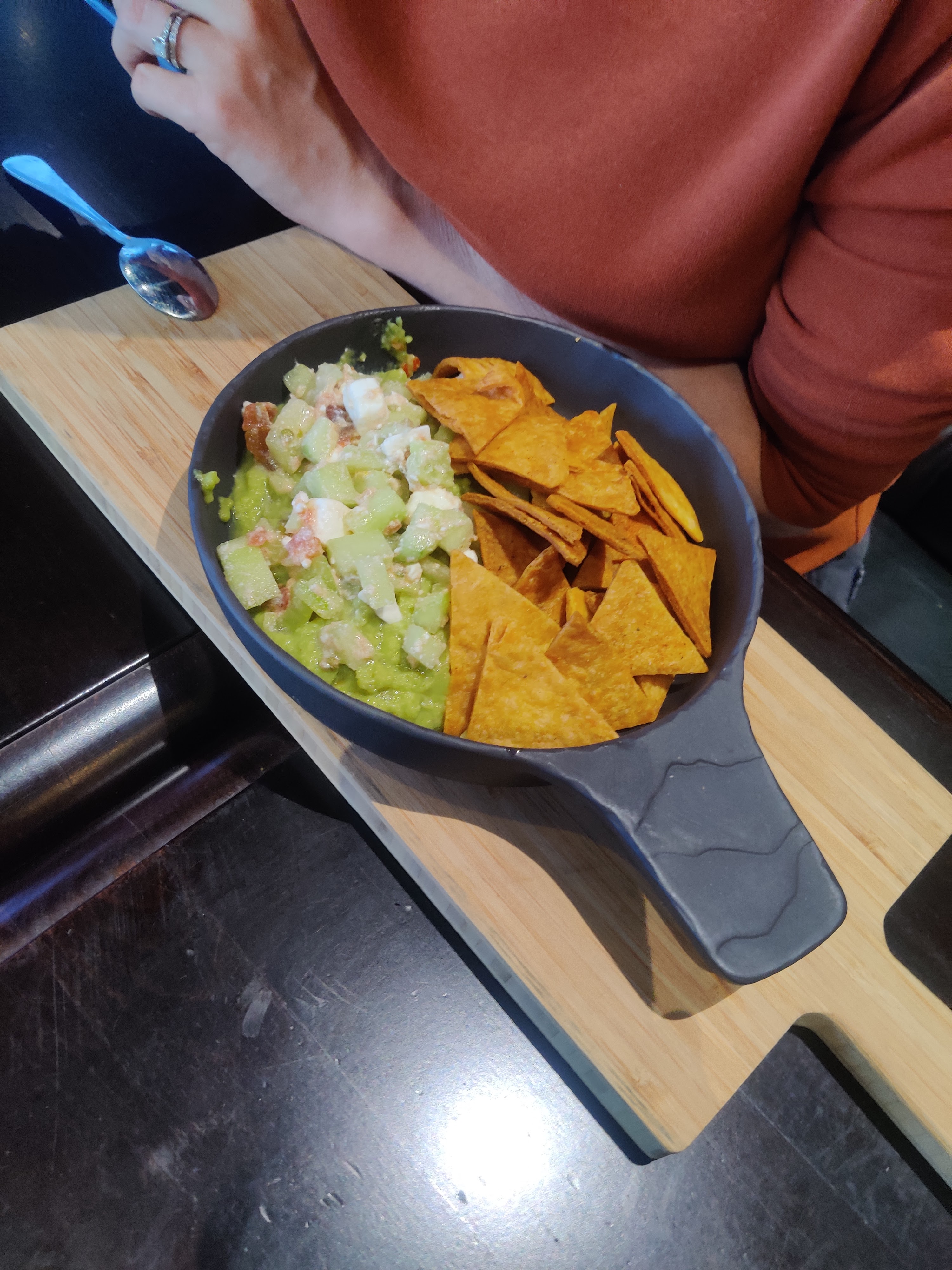 Des serveuses souriantes, agréables fort sympathiques. Par contre 11glaçons dans le spritz à 7.50 euros !!! Les photos des plats sont parfaites mais quand les quesadillas sont arrivées déception, écrasées les unes sur les autres et le poulet détaillé en gros dés...dommage