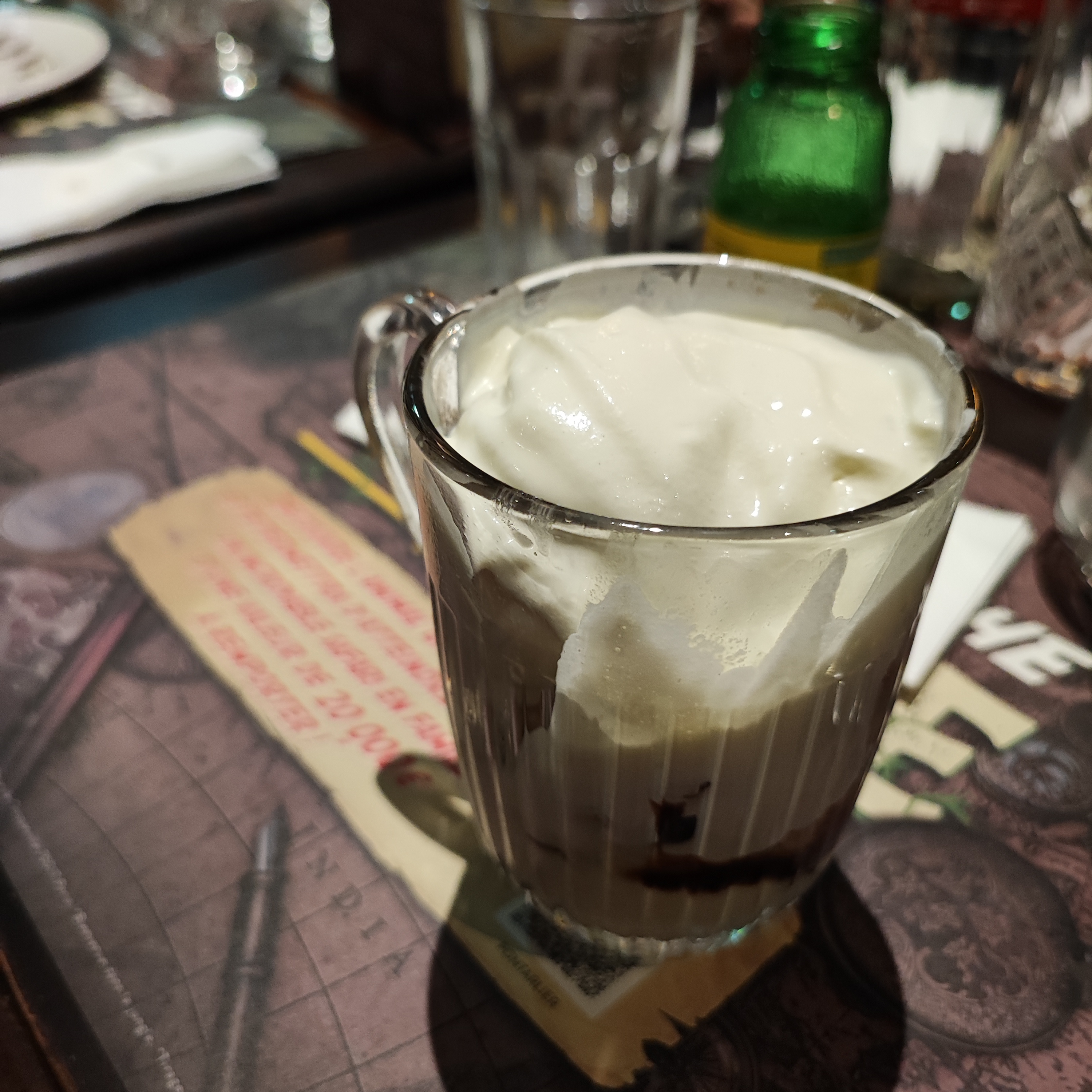 La même chose qu'au Buffalo Grill mais 2 fois plus cher. J'ai commandé un filet de poulet pané sur lequel je n'ai jamais trouvé la mozzarella annoncée, et mon plat était clairement le même que le menu enfant de ma fille ( croustillant de poulet) mais en plus grand. Petite incompréhension durant le service, du coup le serveur à accusé ses collègues et s'est montré insultant envers eux! Photo du cappuccino.