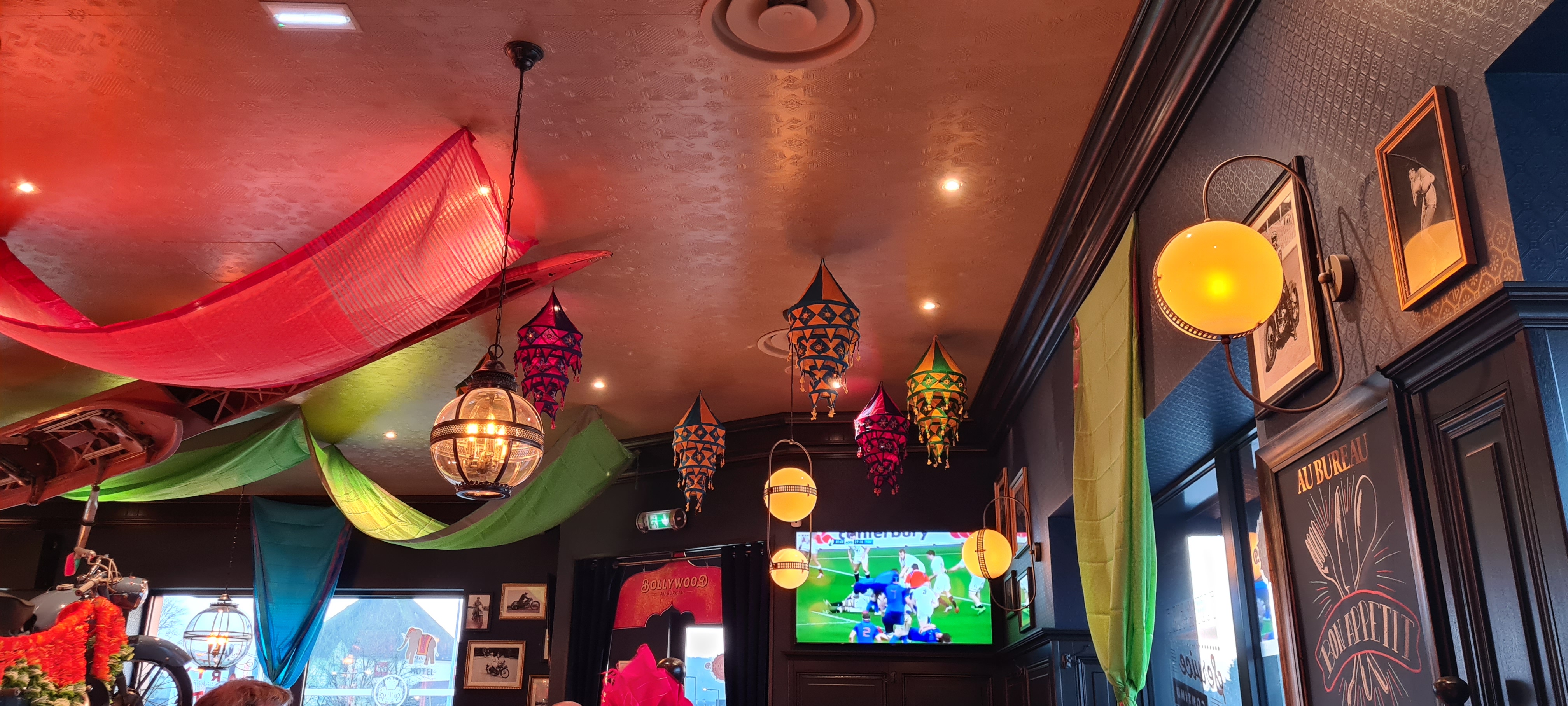 J’ai commandé une brochette de poulet tandoori, très sec, servi avec un tout petit pot de sauce… au fromage ??? Sinon comptez 18 euros pour un burger… Sinon bar très fourni.