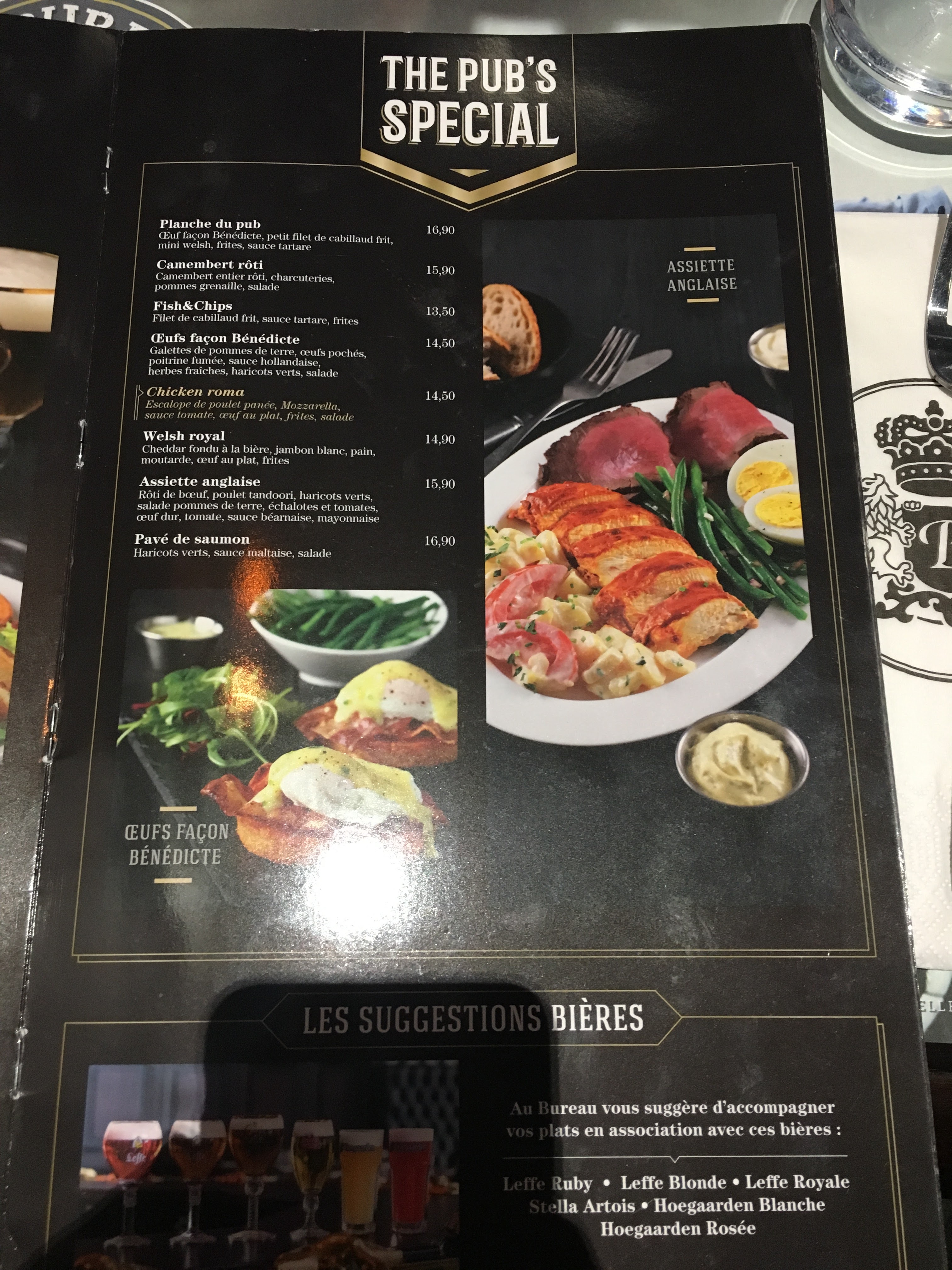 Sortie en groupe un menu nous est proposé (chose que je conçois et tout a fait normal pour mieux nous servir) toute fois ne prenant jamais de dessert j'ai payer 25€ pour un fish &chips et un verre de vin simple réponse c'était un menu. Je ne reviendrais pas