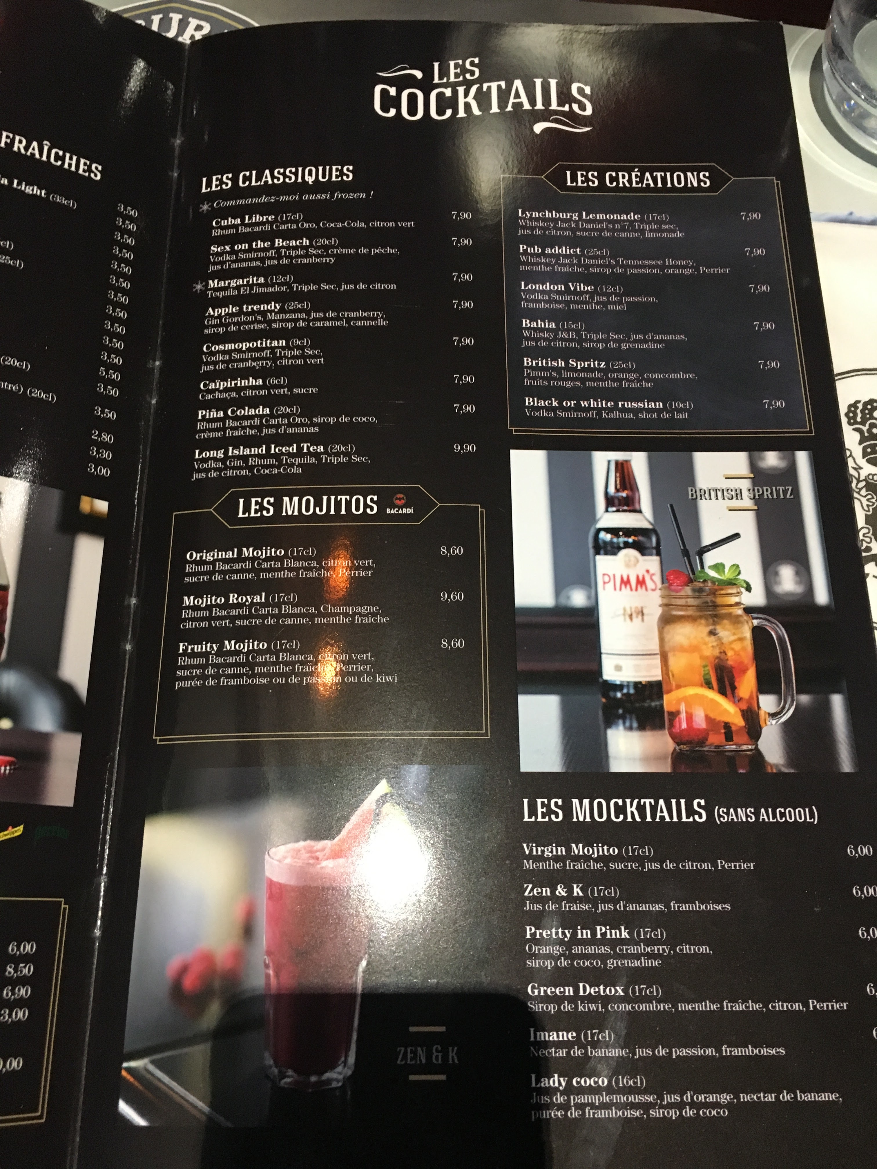 Cadre sympathique mais la cuisine n est pas à la hauteur des prix pratiqués. A l exterieur du restaurant, la carte des boissons est presque aussi importante que celle de l alimentation... Il faut également arriver à une certaine heure ou avoir pensé à réserver pour pouvoir bénéficier de deux places comportant une partie canapé. Sinon, vous êtes relégués contre un mur car toutes les places avec partie canapé sont réservées. Mais il est à noter que nous avons été agreablement servis par une serveuse aimable et rapide.