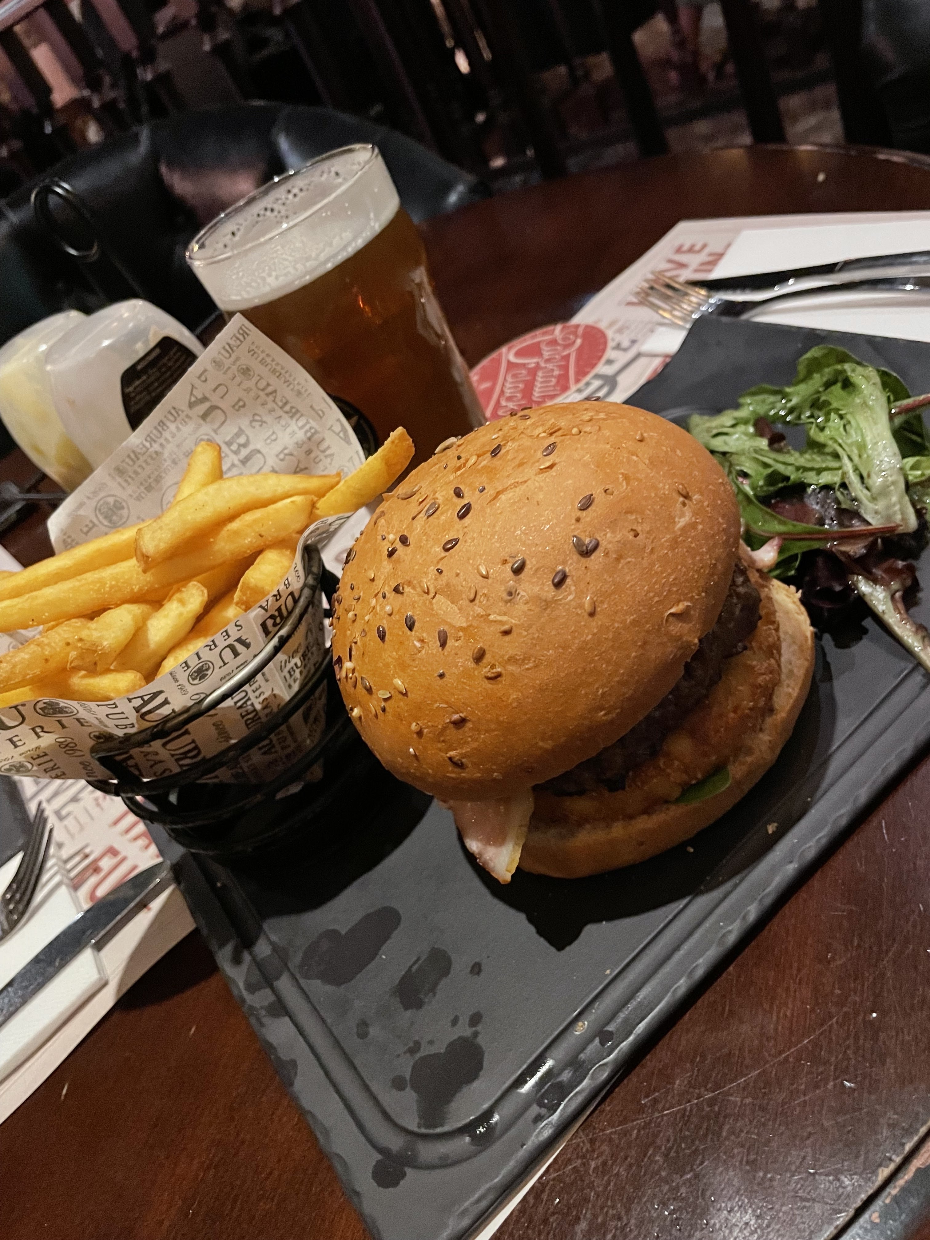 Nourriture plutôt bonne pour l’ensemble de notre table mais ça reste de la brasserie basique avec pas mal de surgelé. Ma salade n’était quand à elle pas terrible les croûtons étaient tout mou et il y avait 3 morceaux d’avocats qui se battaient en duel.