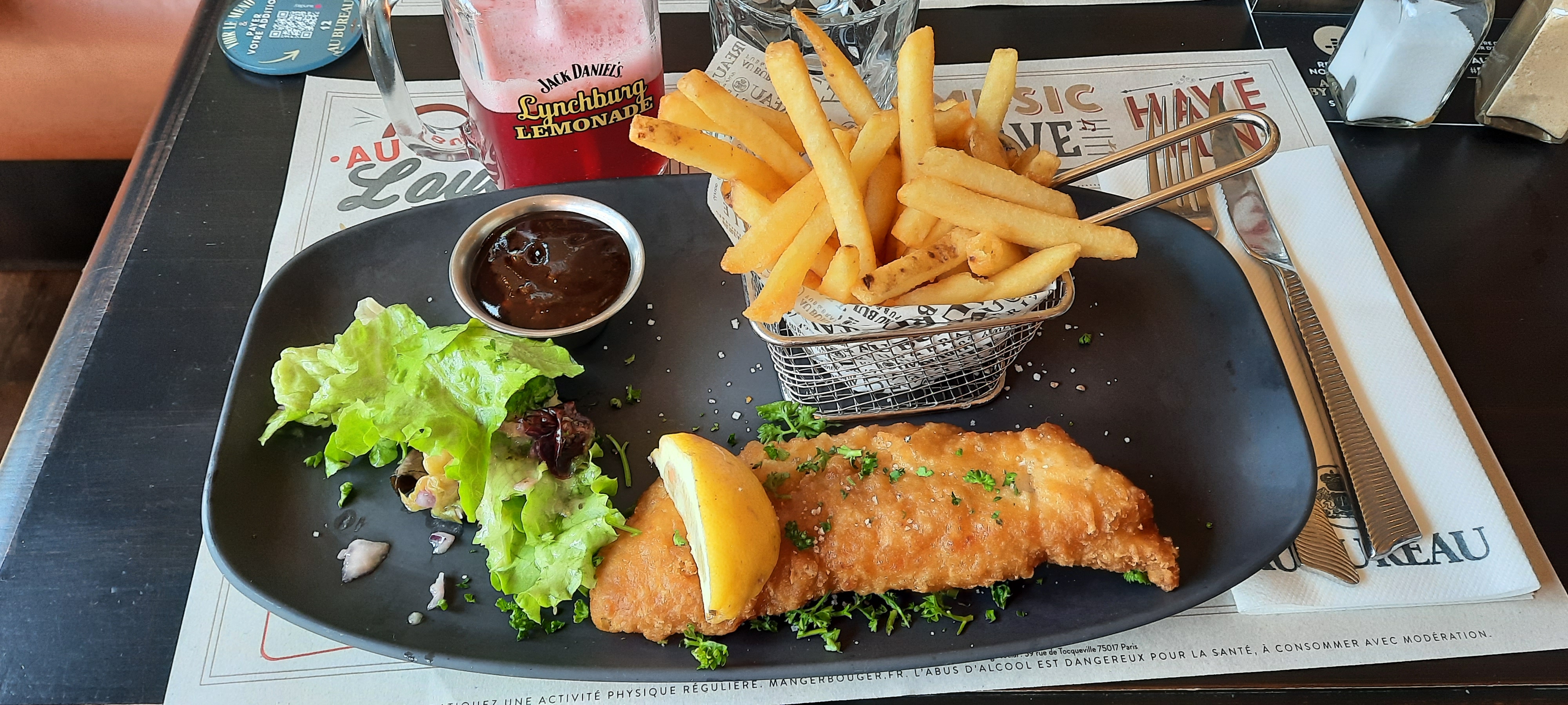 Cocktail sans alcool Tiki Tiki exceptionnel, les plats étaient bons seuls bémol pour la salade + de que de garnitures et le welsch c'était du pain de mie et non du pain de compagne. Le poulets croustillant du menu enfant était fait maison et à tomber par terre Rien à redire pour les desserts, un délice