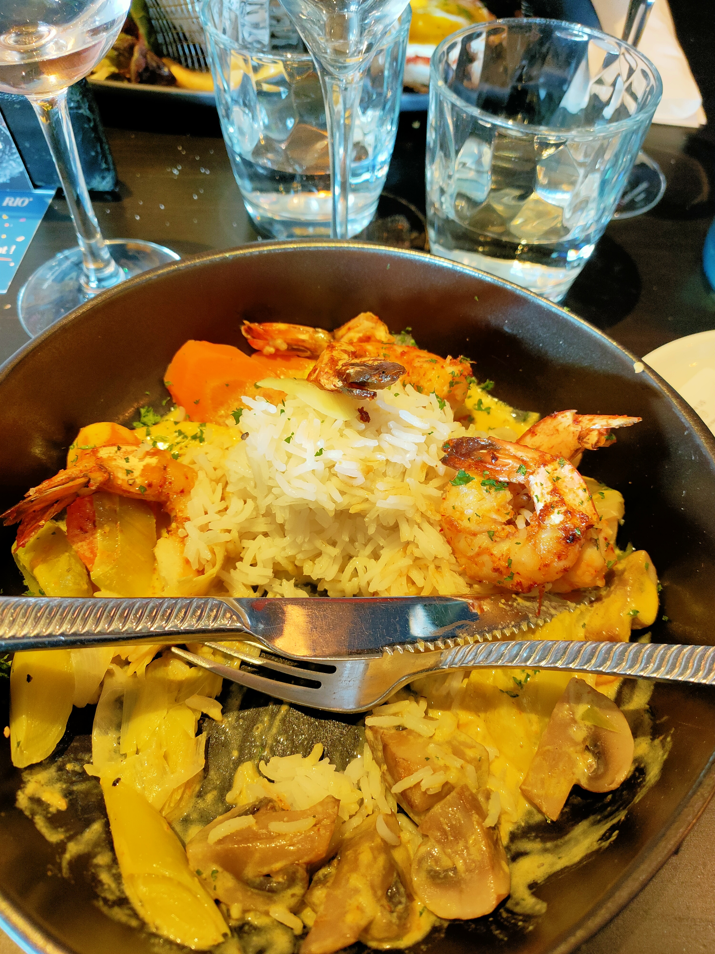 Diner entre collègues J'ai pris un curry crevette succulent cobsistant Le blanc moelleux etait fin Service ok On reviendra! Merci à l'équipe sympathique