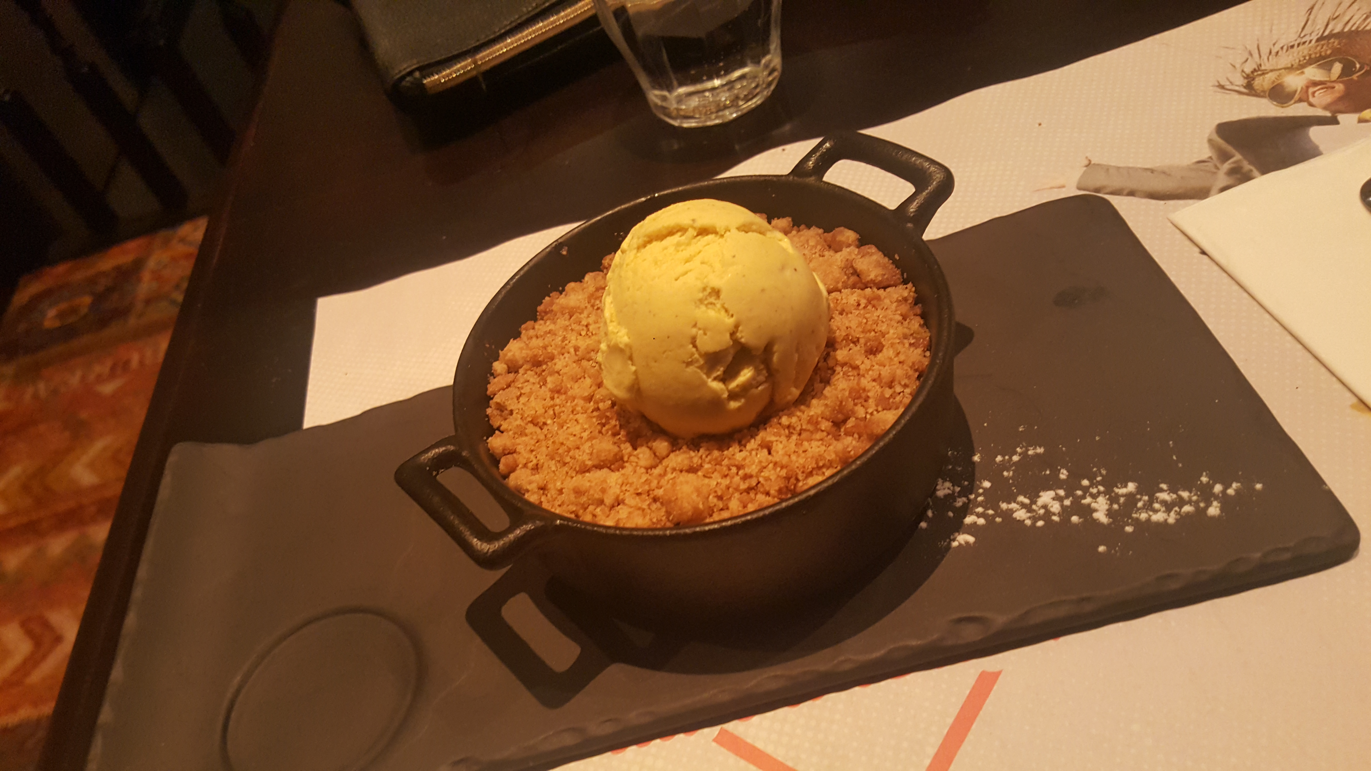 Plat du moment avec les crozets : je cherche encore le fromage à raclette… c’était sec, ça restait collé au fond du plat et c’était sans goût. Le jambon cru est servi à côté. La Salade Queen Victoria est arrivée sans lardons, un oubli en cuisine. Ils ont rectifiés. Le pain était dur. Les serveurs sont très souriants et agréables avec un service impeccable mais en cuisine ça ne suit pas. Dommage