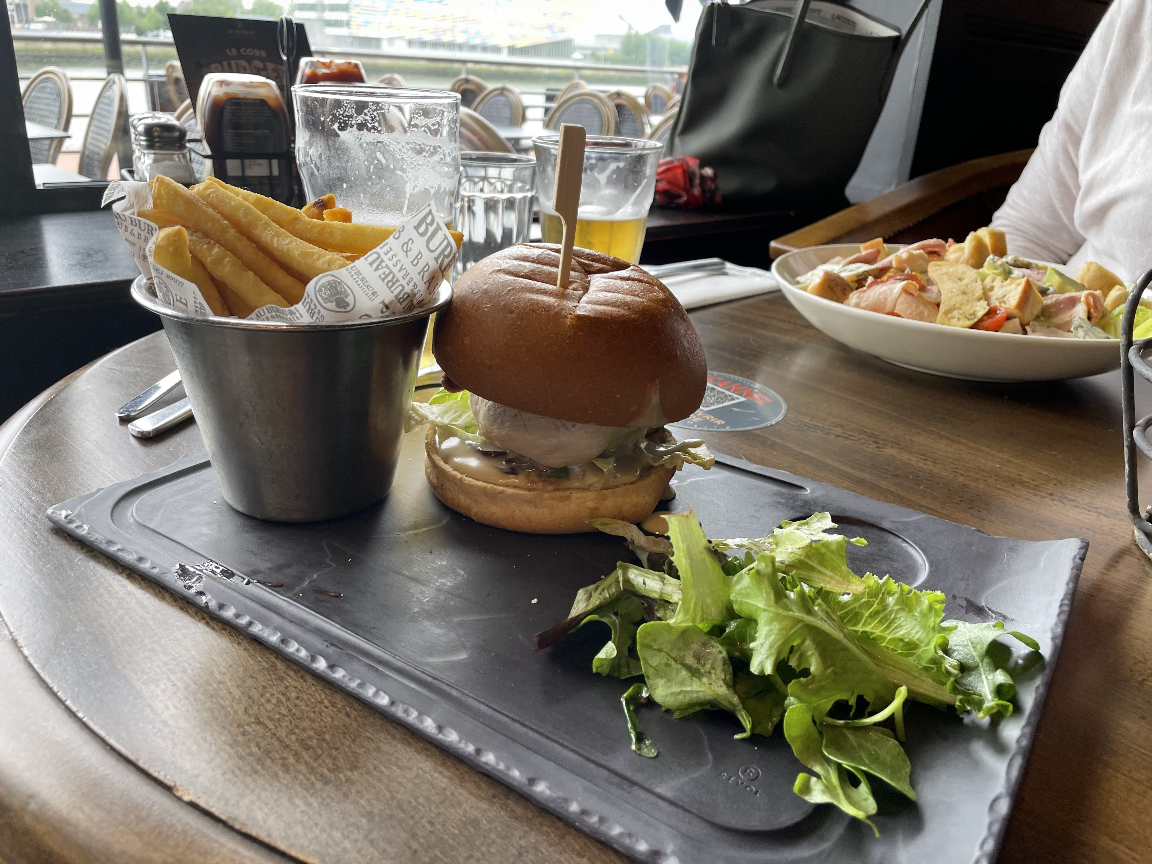 Sortie entre filles sur les quais. Alors hamburger / frites c’était bon mais rien de transcendant en plus vous ne pouvez pas faire moitié salade et frites ! Si vous voulez de la salade c’est en supplément. Pour le camembert chaud pas de charcuterie avec mais juste de la rosette… seule consolation les cocktails sont bien fait et l’ambiance y est bonne si vous tombez sur le bon DJ.