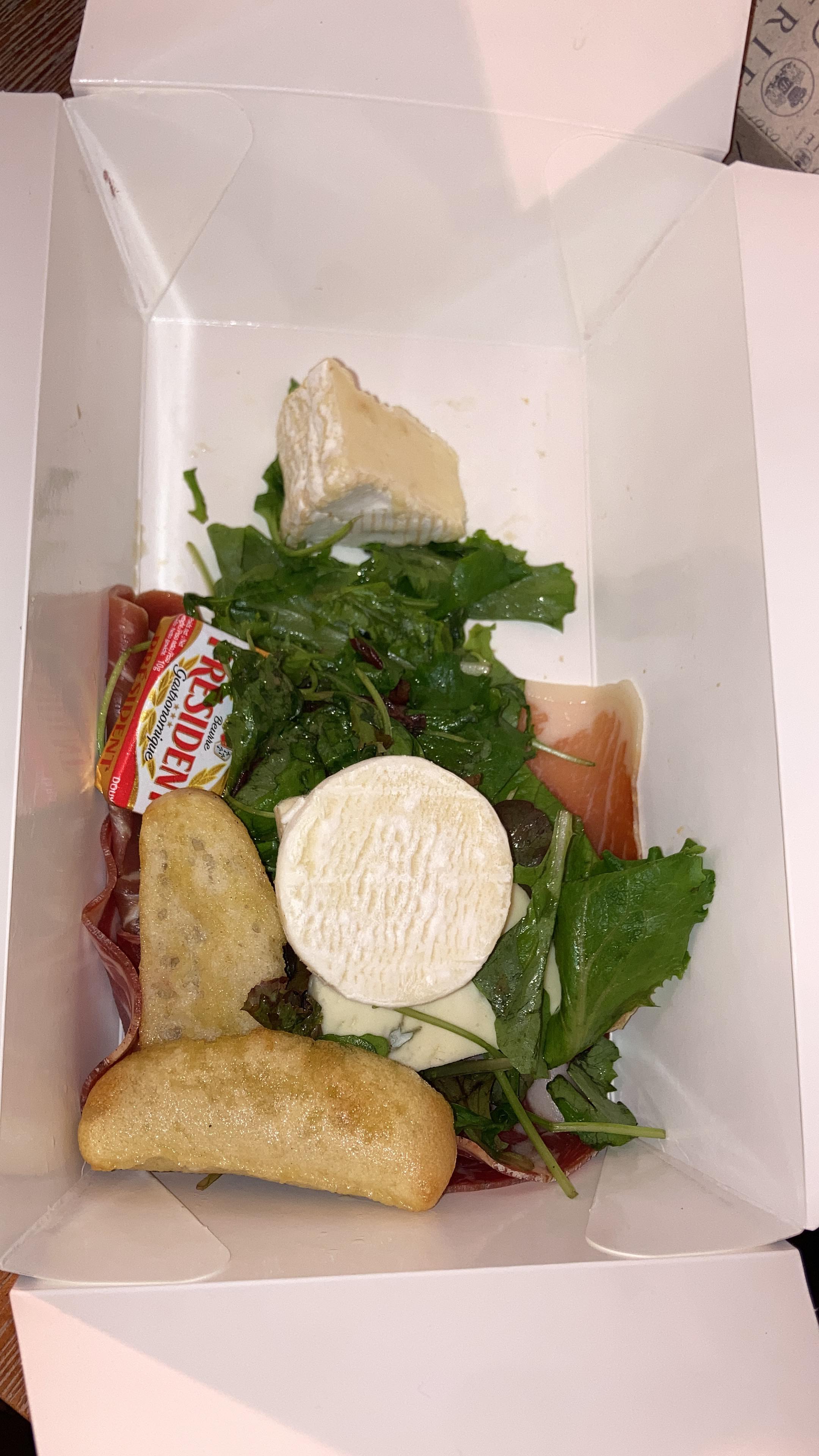 Nous avons passé une commande pour ce faire un petit apéro, ce que nous avons reçu est honteux. Les aliments baignent dans le vinaigre et huile, 3 pauvres morceaux de fromages et sans parler de la charcuterie mauvaise ( l’odeur infect, sans parler du goût) on aurait dit de la charcuterie d’une semaine !!! La salade pas bonne également. Le poulet était tout sec et immangeable . Nous avons payé 31€ pour avoir une chose aussi horrible ! Et quand nous avons appelé pour dire notre mécontentements la dame a juste répondu « désolée » . Je vous déconseille ce restaurant