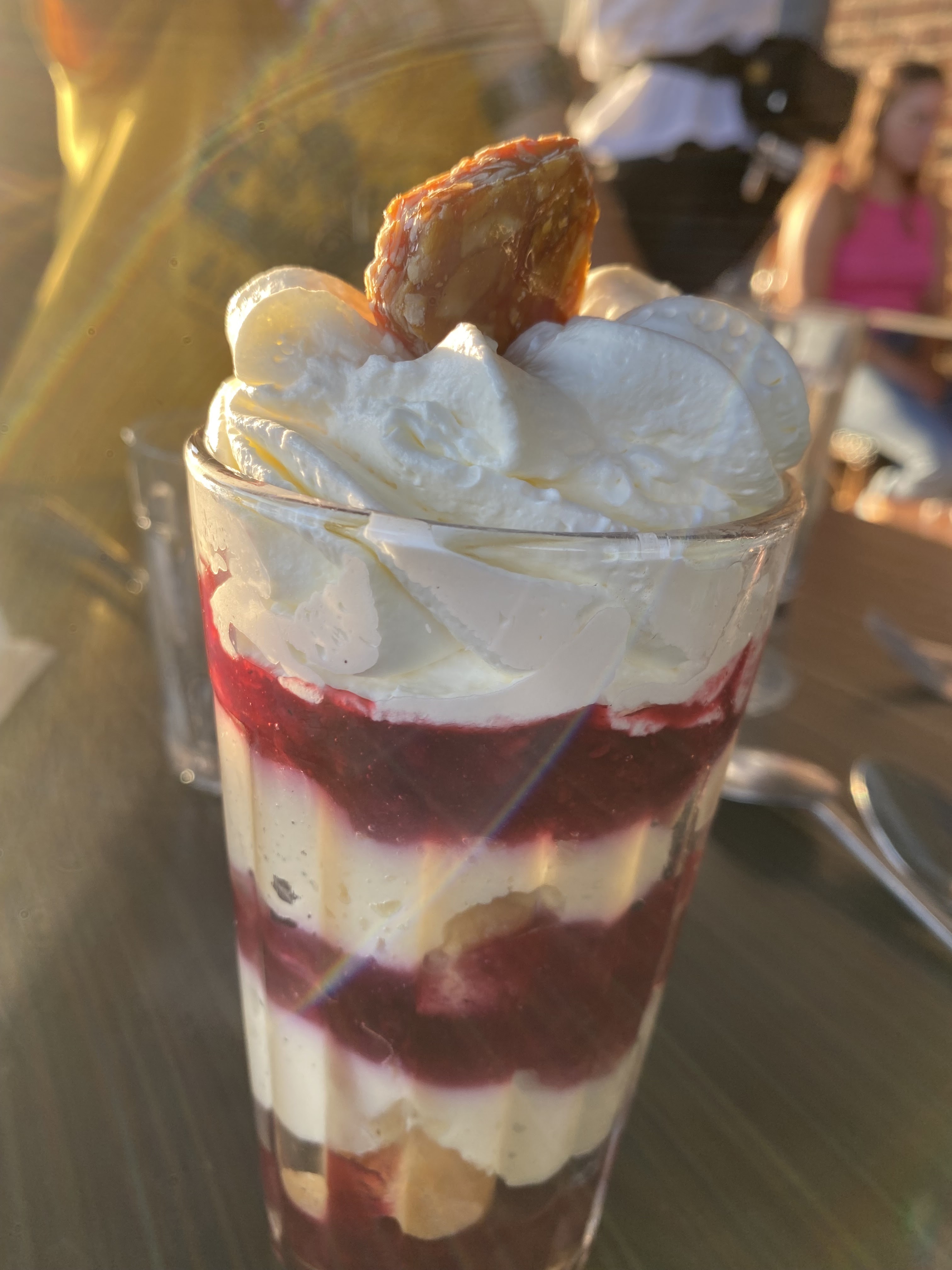 Service rapide un peu d’attente pour le dessert. Gourmand un plaisir de manger devant la seine