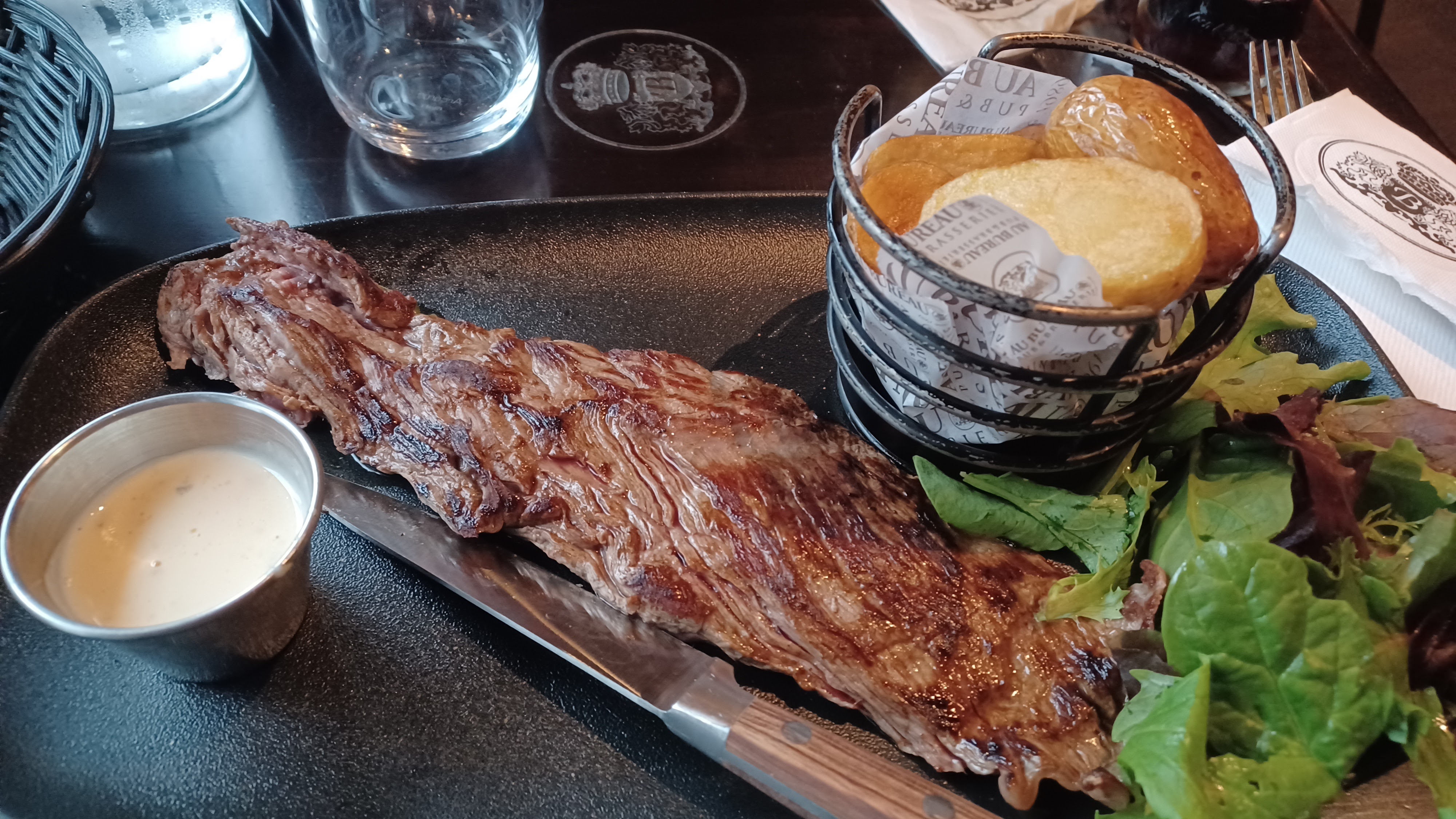 Aillant déjà mangé dans plusieurs « Au bureau » je suis assez déçu de celui ci, tout d’abord lorsque nous avons commandé, la serveuse nous a servie les plats avant l’apéritif, un cheveux mi long noir retrouvé dans les frites, de la purée mit dans un plat alors que des frites avait été demandé, une fourchette tachée et une longue attente avant d’avoir été débarrassée. Peut être une nouvelle serveuse avec un manque d’expérience ce qui expliquerai ces quelques petits soucis de gestion de salle, mais par contre, revoir l’hygiène au niveau des cuisines.