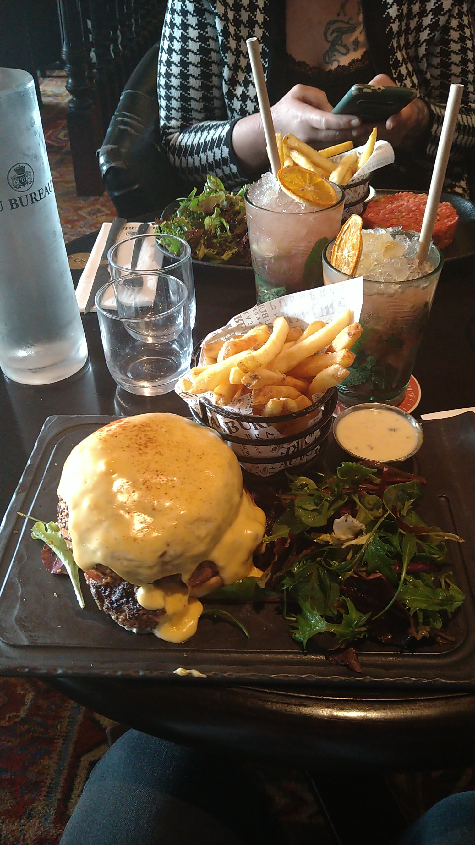 Les cocktails sont sympas, je n'ai pas pris de burger donc mon avis n'est pas vraiment représentatif. J'ai pris un Welsh qui était moyen, et qui a refroidit très vite. Les frites étaient bonnes.