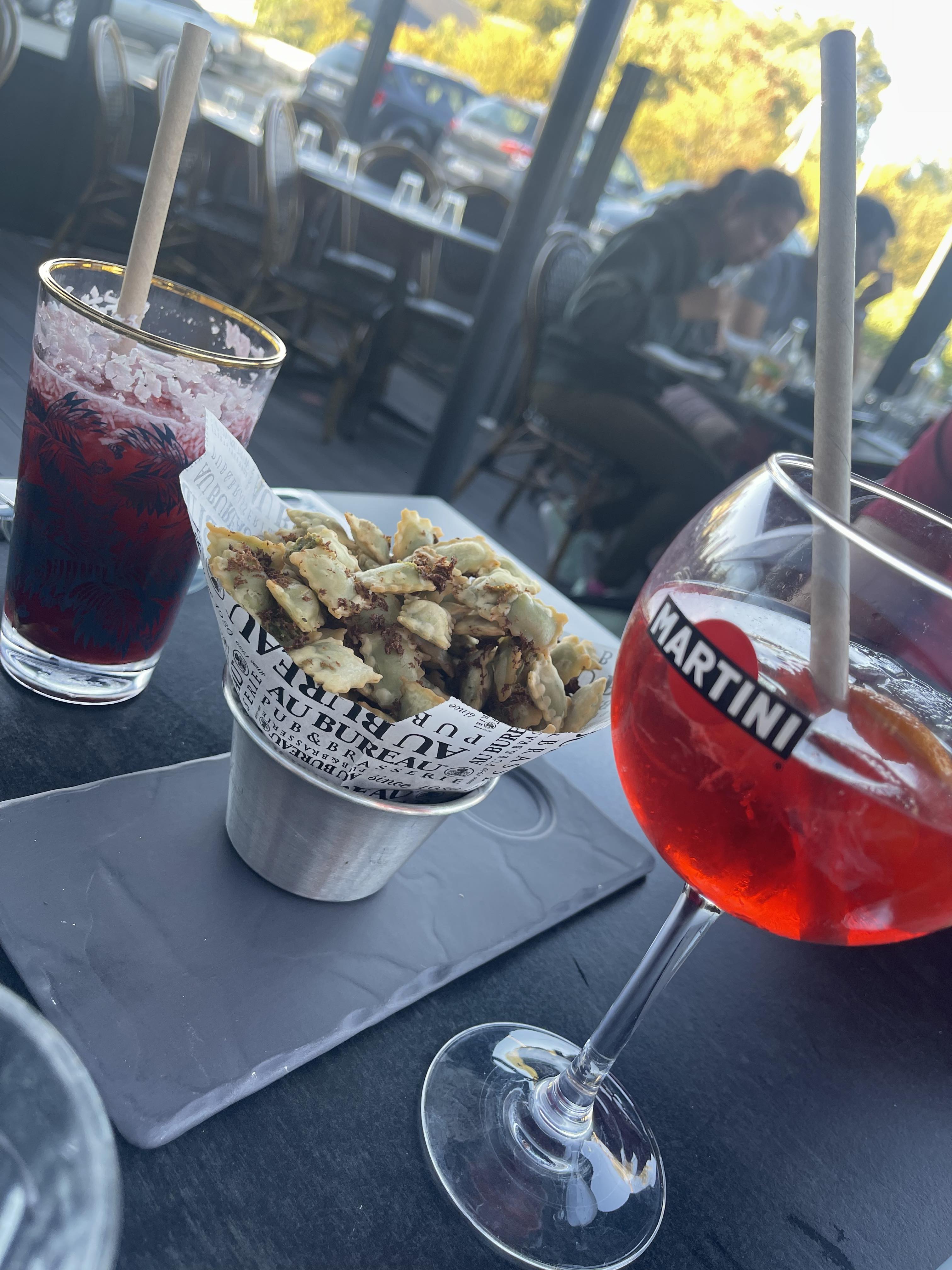 Tout d'abord, en apéritif, nous avons pris 2 cocktails : le Red Coconut qui était bon mais très très sucré, l'ajout d'eau était nécessaire, ainsi que le Virgin spritz qui était bon. Avec sa nous avons pris les crispy ravioles qui était très bon, cela change des standards que l'on peut trouver en général à partager. En plats nous avons pris 2 Tomato Flam', plat très bon même si l'on ne ressent casi pas la compoté d'oignon Au niveau du service rien à dire, serveur à l'écoute. Au total, on s'en tire pour 64€.