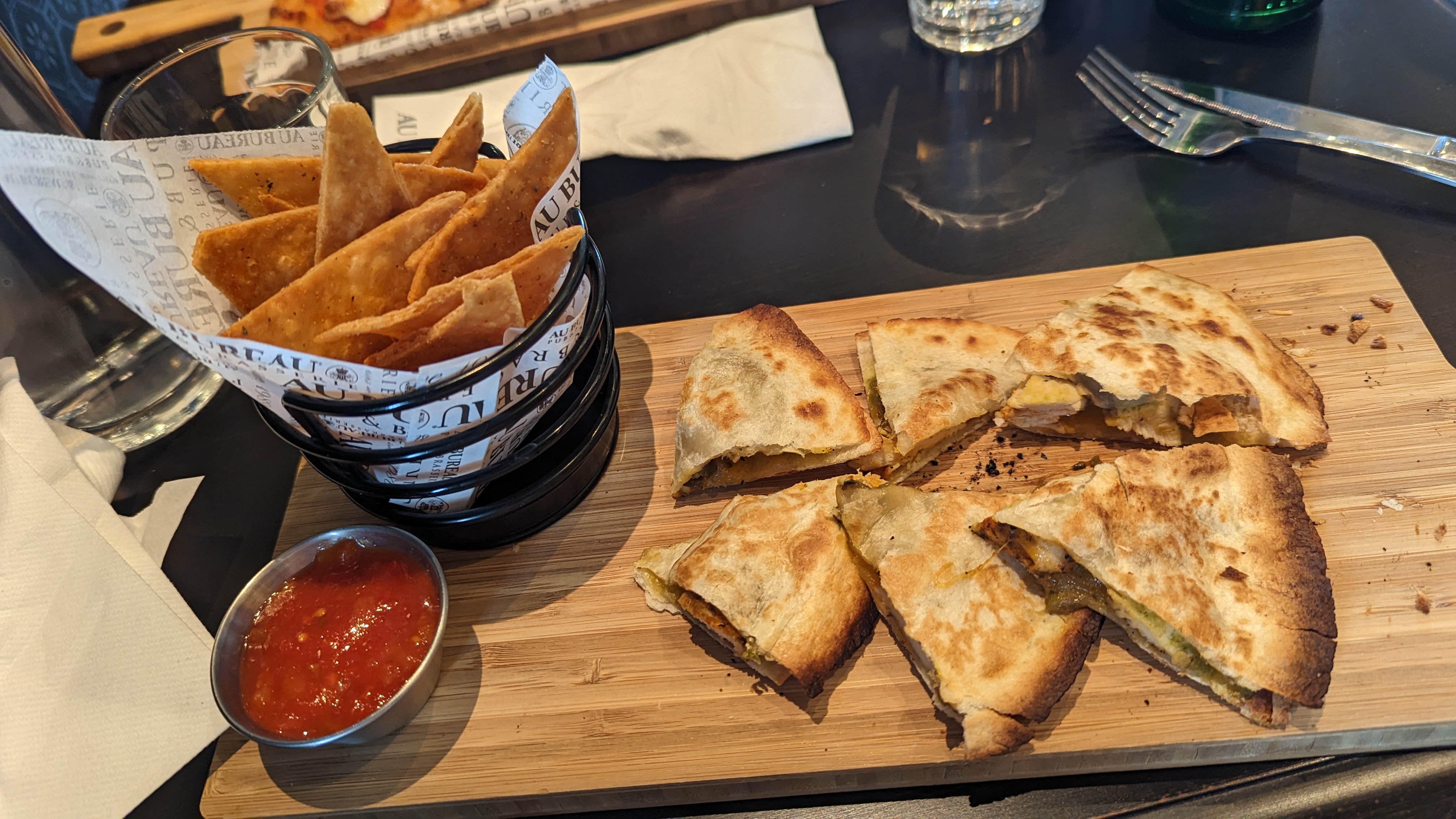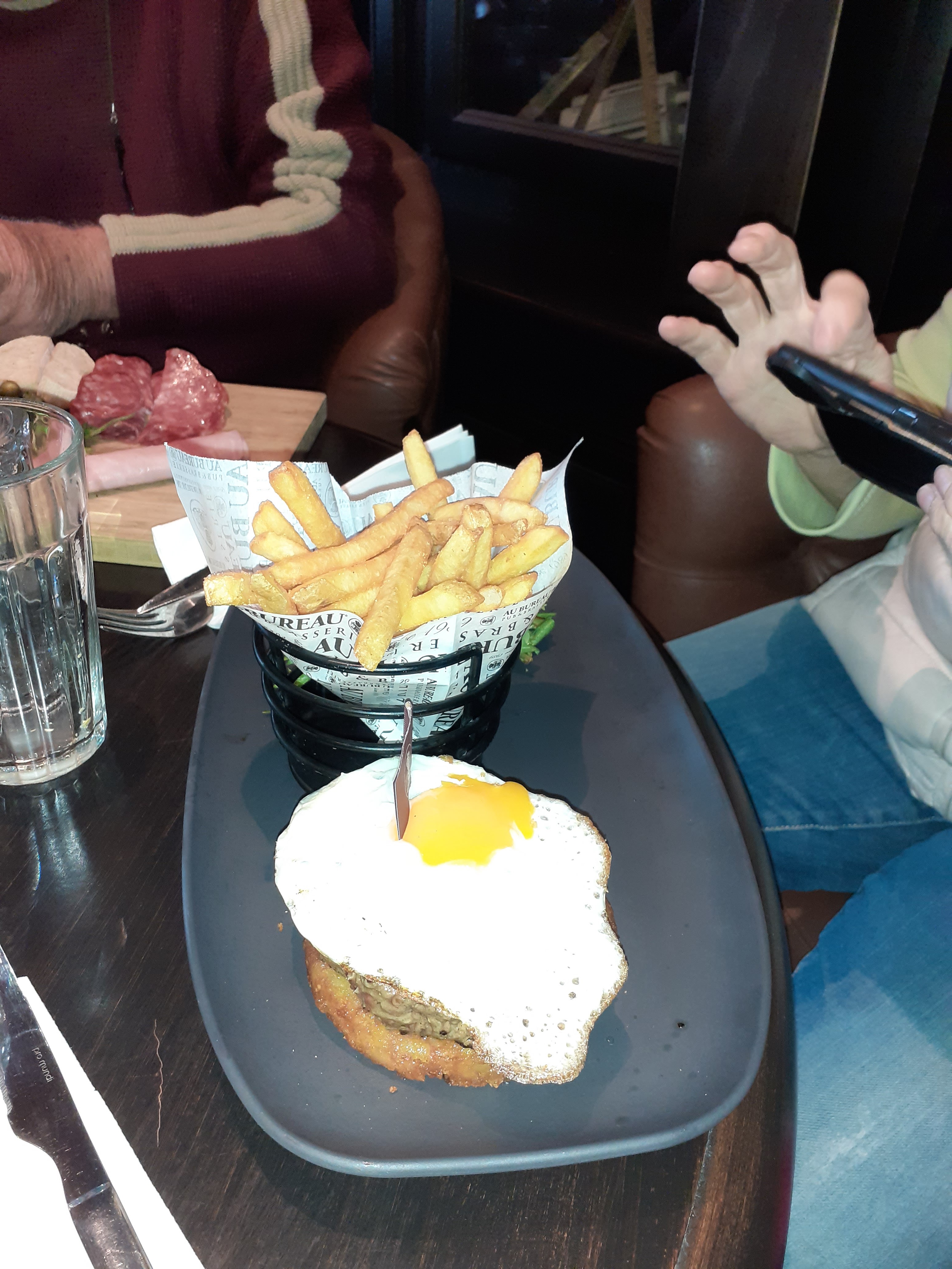 Tout d abord ravie qu il y ait deux nouveaux restaurants à Cormontreuil, cela apportera un peu plus de diversités. Concernant le restaurant Au bureau, très bon accueil de la part du serveur. Le cadre est vraiment très sympa, photo la prochaine fois 😅😅. Concernant le service petite erreur lors de notre prise de commande, nous commandons l assiette de charcuterie, nous servi une assiette de finger food frits. Petite erreur quin est pas dramatique,nous avons gardé cette assiette apéro. Concernant le plat j ai choisi une assiette de salade California, une petite salade bonne un peu timide en avocat et crevettes...mais bonne, l assiette de mon ami pour ma part manquait un peu de charcuterie...Sinon le service est vraiment très agréable. Je reviendrai malgré cette petite erreur...
