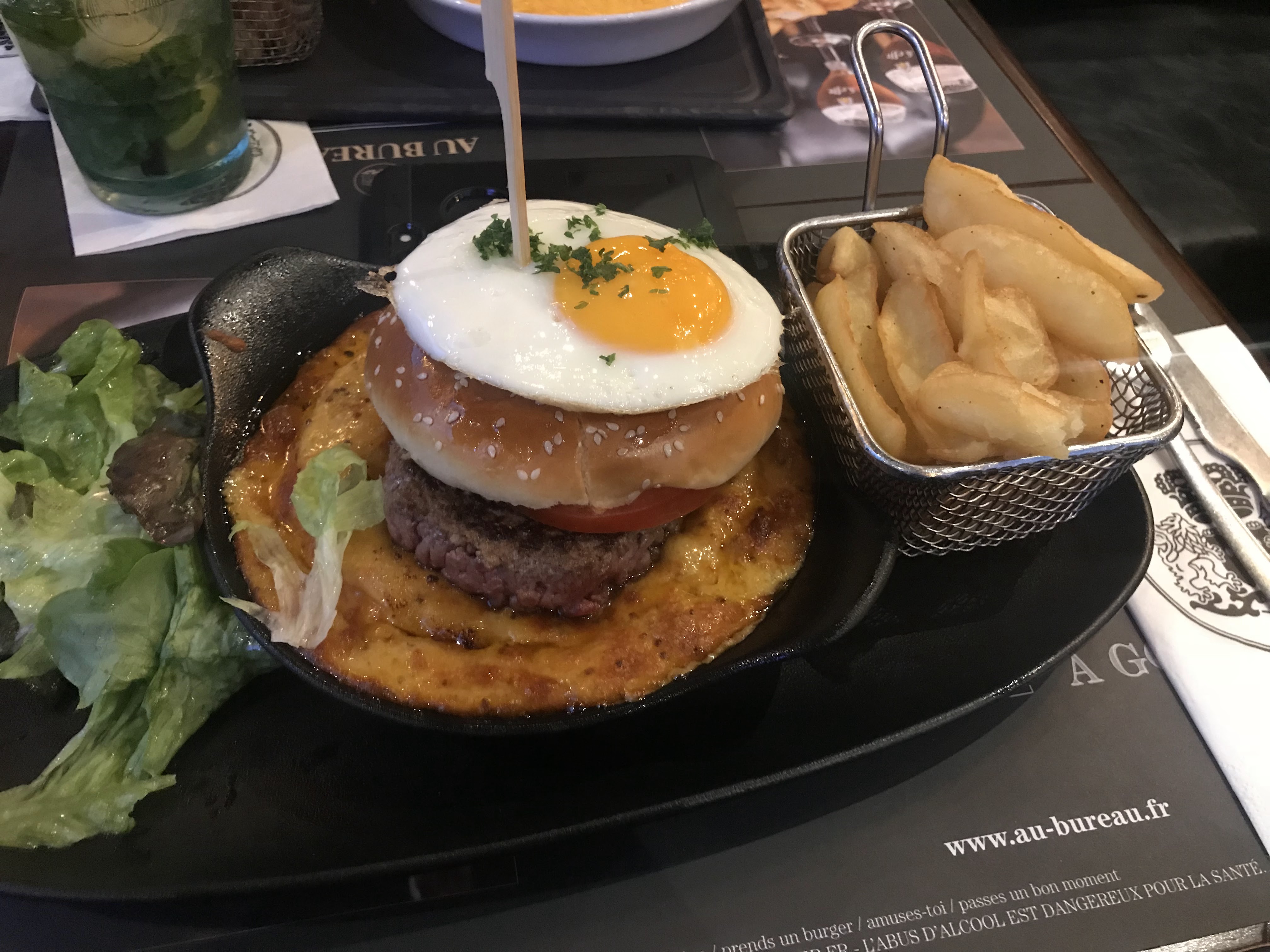 Après quelques temps sans être venue y manger, quel plaisir d’être accueillis dans le cadre de Noël avec les chaleureuses décorations! Les burgers commandés étaient top: pain moelleux et steak cuit comme demandé. Le cadre et l’ambiance du Bureau sont toujours aussi agréables!