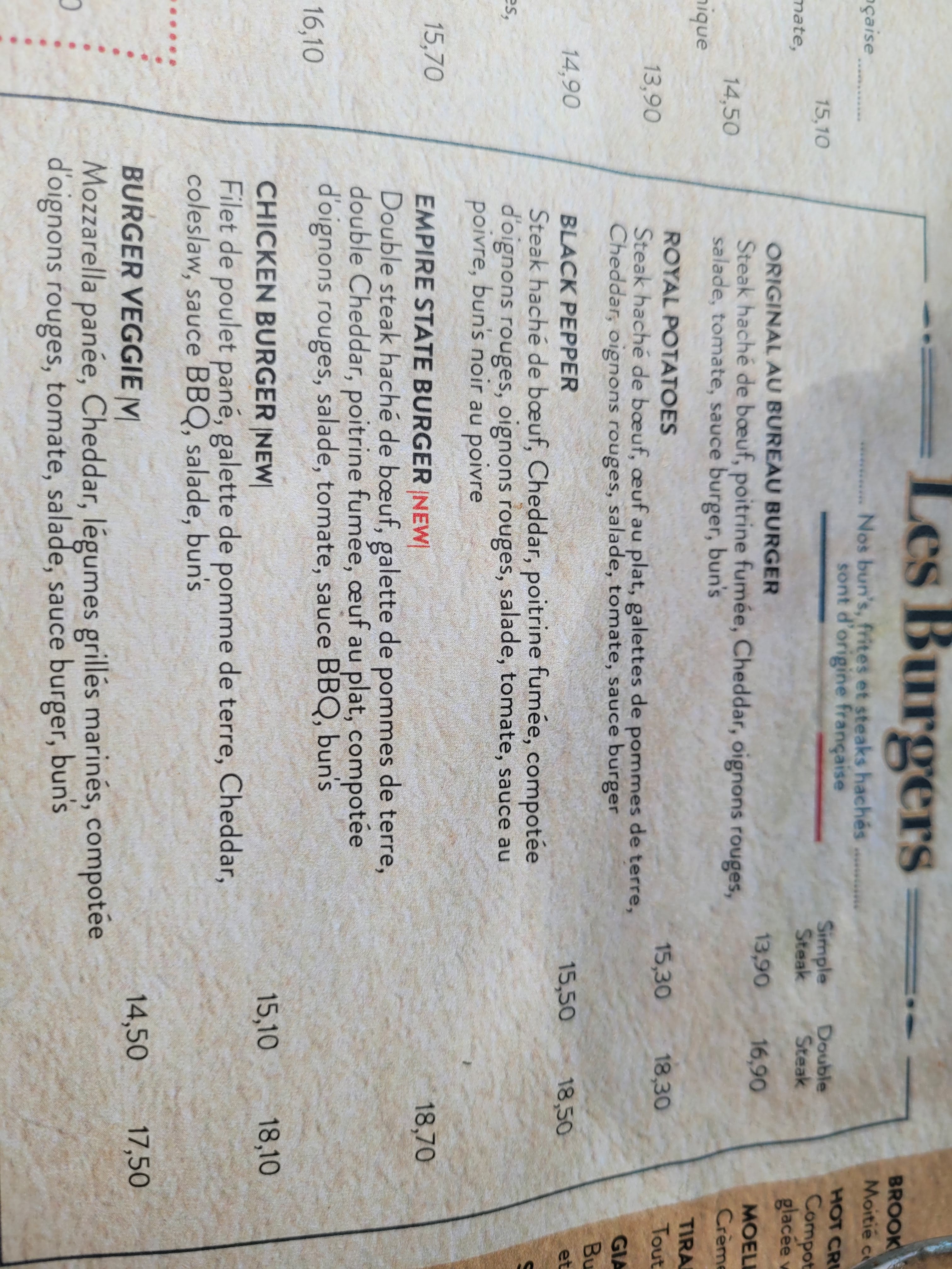 J'ai pris le poulet au maroilles : excellent la prochaine fois je penses en reprendre sans hésiter