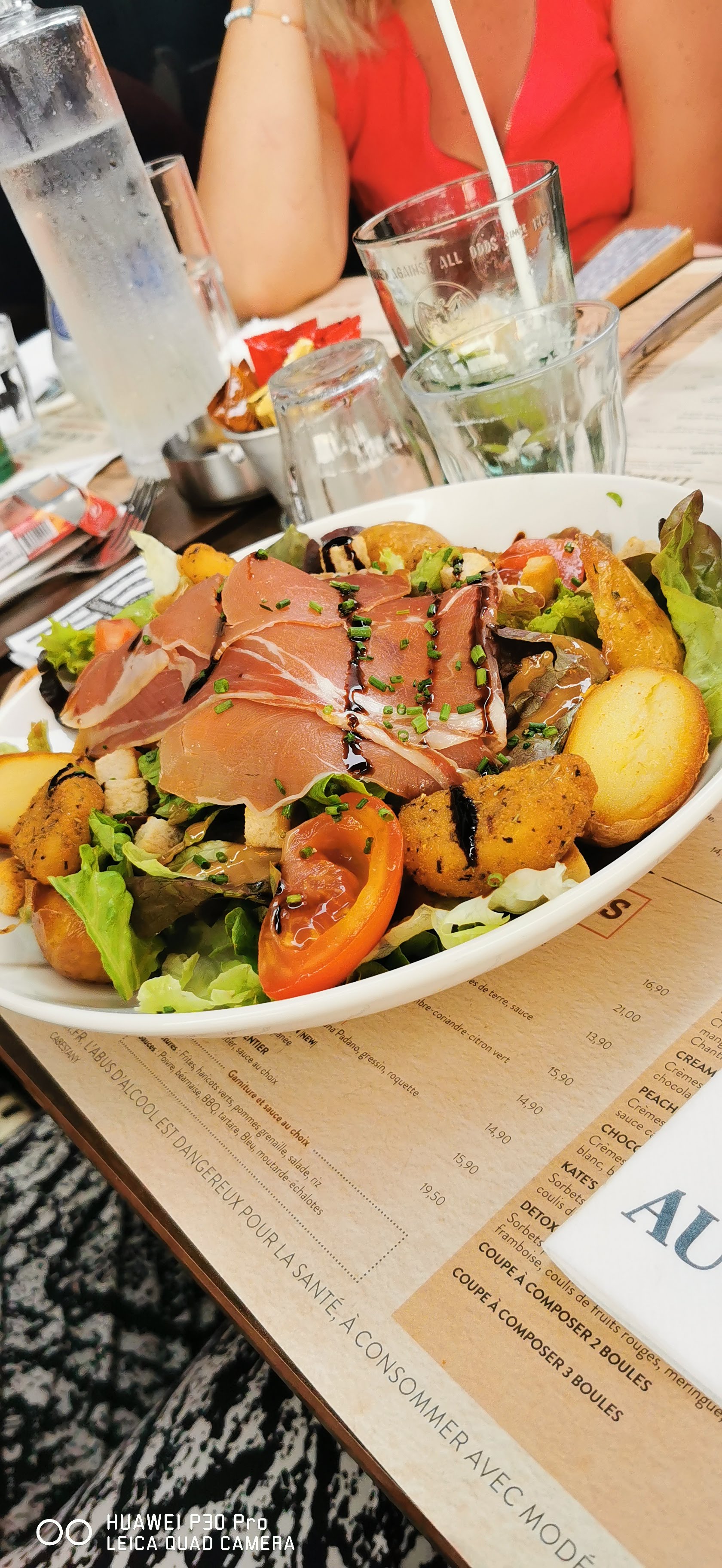 Salade Ceasars simple. Que dire. Très peu assaisonné pas de goût . Les mojito moyen. Le dessert pas trop mal..