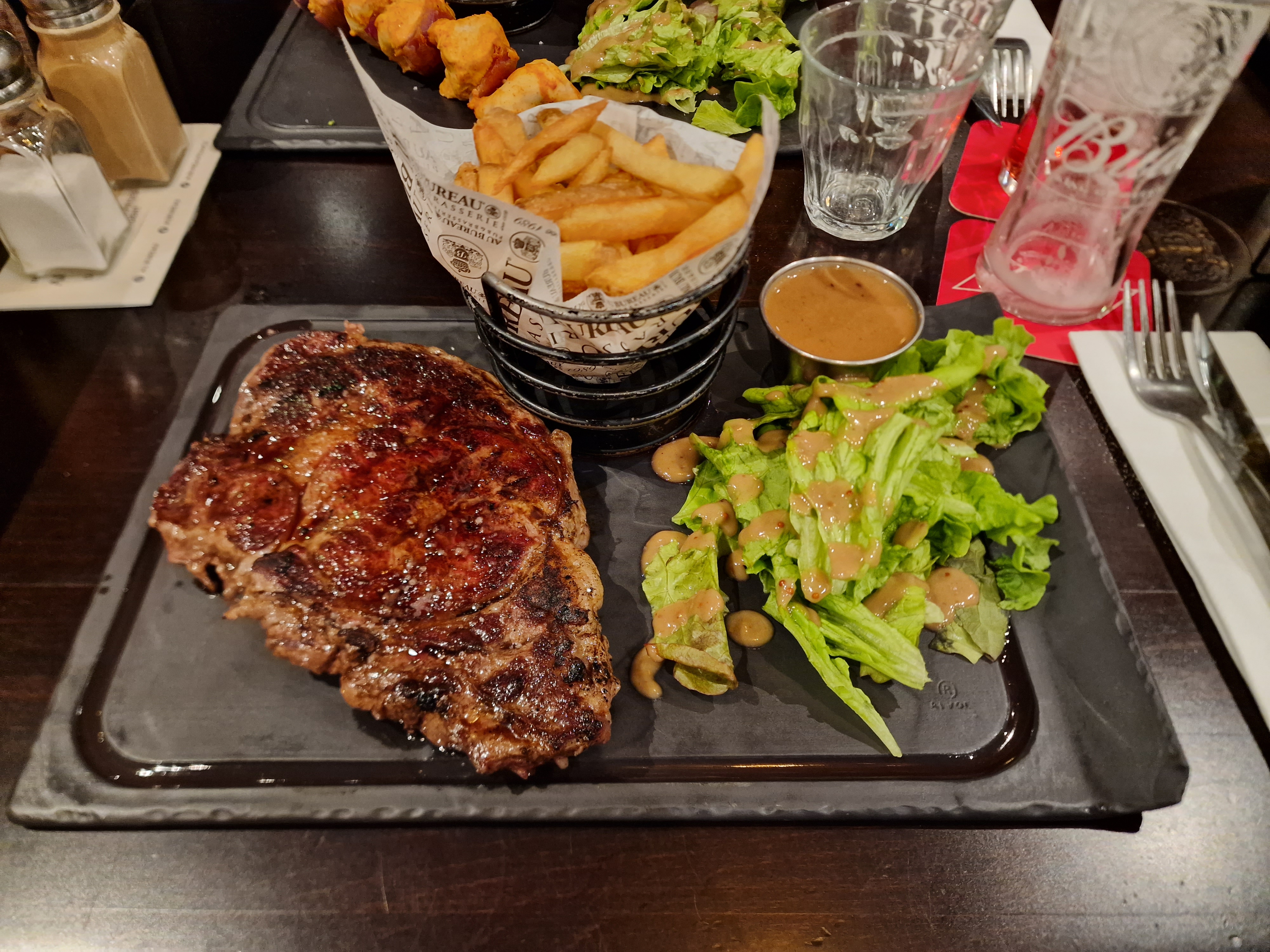 Nous avons déjeuné aujourd'hui le 25/02/2024, pour la 1ère et la dernière fois au Bureau à Cabestany, moi j'ai choisi une entrecôte au prix de 24,90, et j'ai été très déçue, viande pas tendre je me suis forcée à la finir, et la sauce au poivre facturée 1€, mon mari a choisi une bavette idem, pas tendre non plus, le service pas génial, je ne recommande pas ce restaurant,