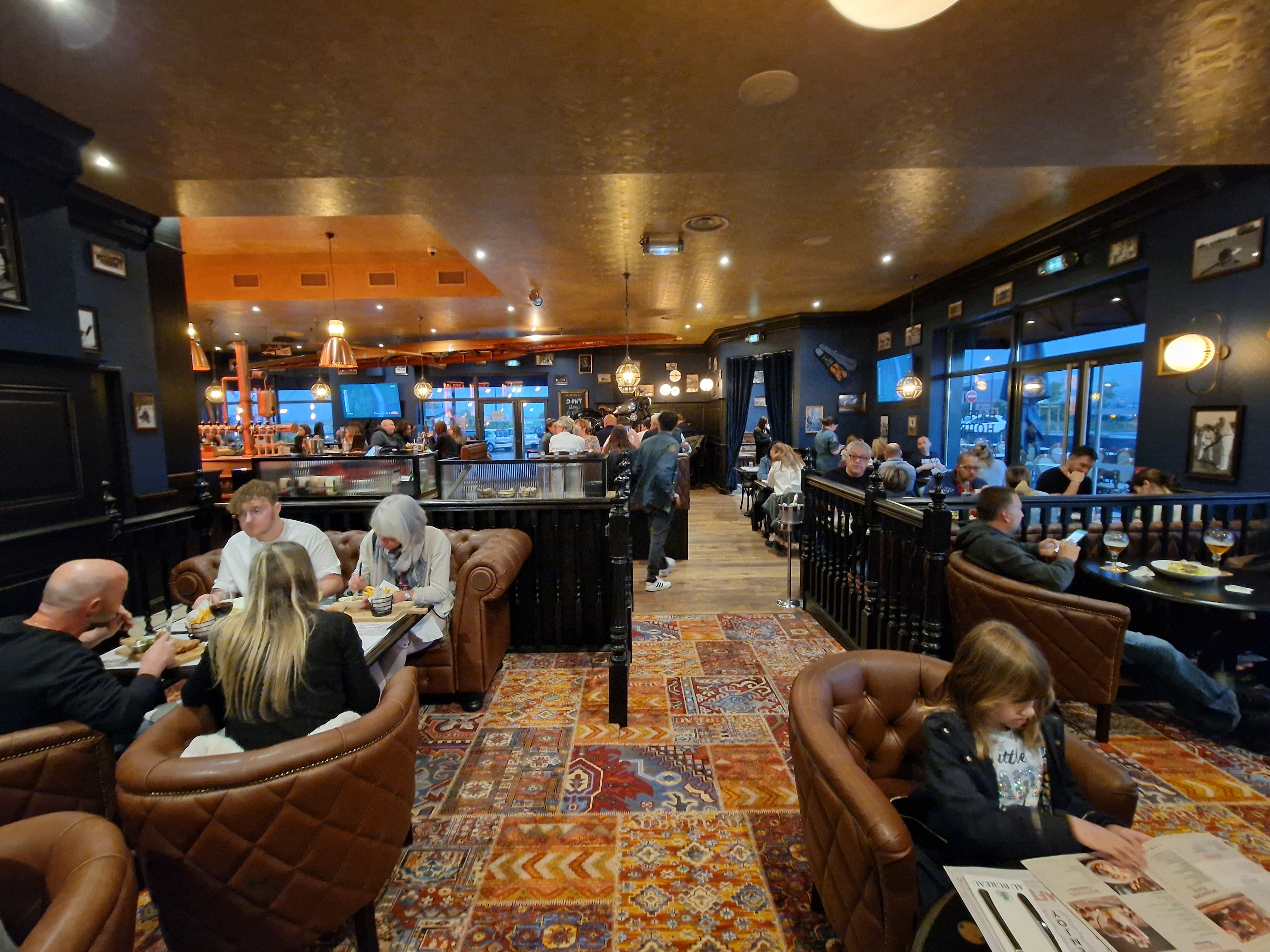Facile d'accès depuis l'autoroute, grand parking, belle déco. Nous avons passé un bon moment pour suivre un match sur les écrans XXXL, autour d'un bon repas et de bonnes bières. Un accueil chaleureux par le staff, un service plus que remarquable avec une mention spéciale pour Mylène et Cynthia.