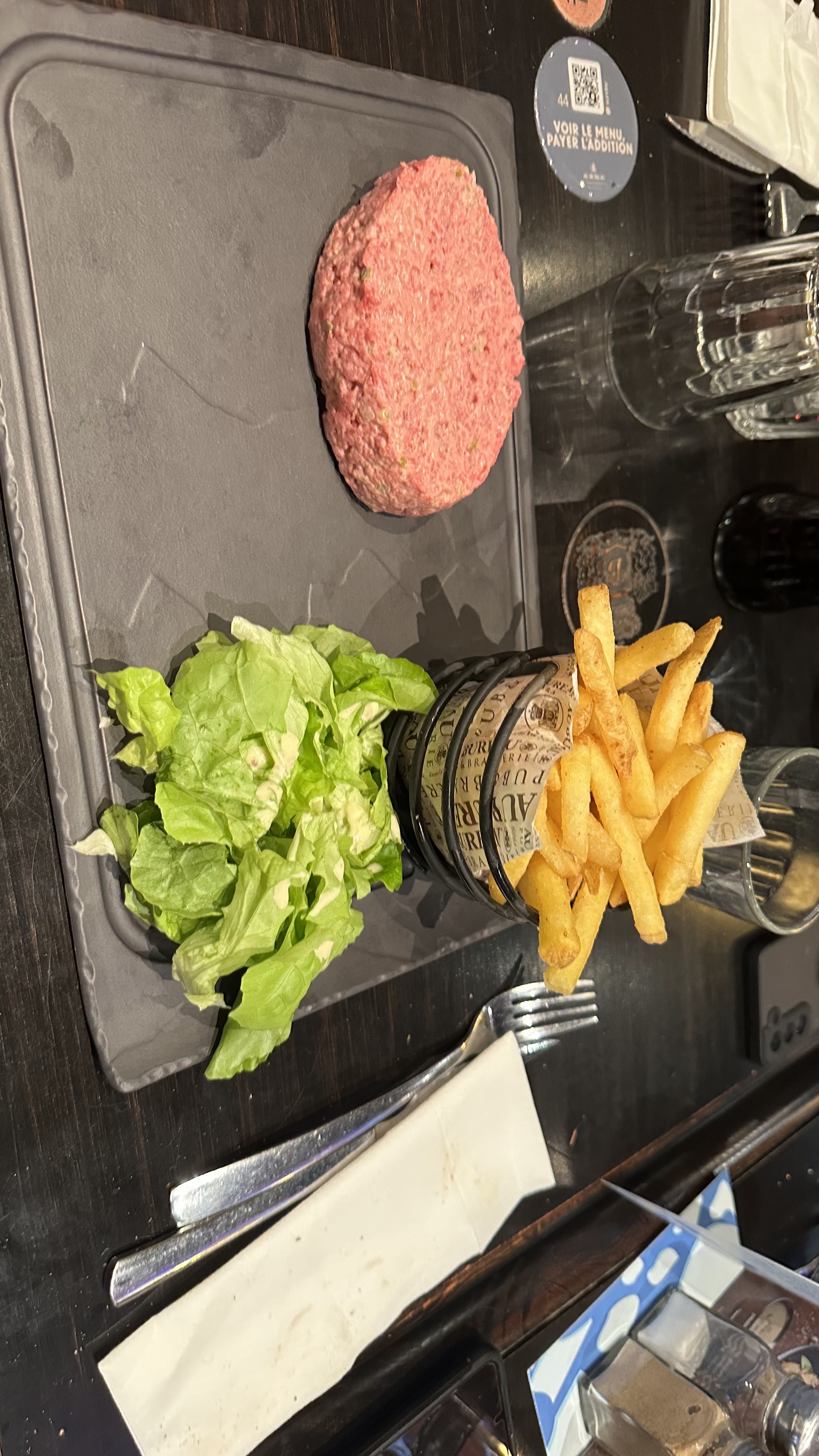 J ai trouvé le lieu propre et accueillant, quand au serveur très pressée de nous proposer le plats et quand on commande attente de 20min avec un steak froid et pas de mayo pour ma part quand a mon époux nickel un boeuf tartare . Bref dans l ensemble reste correct .