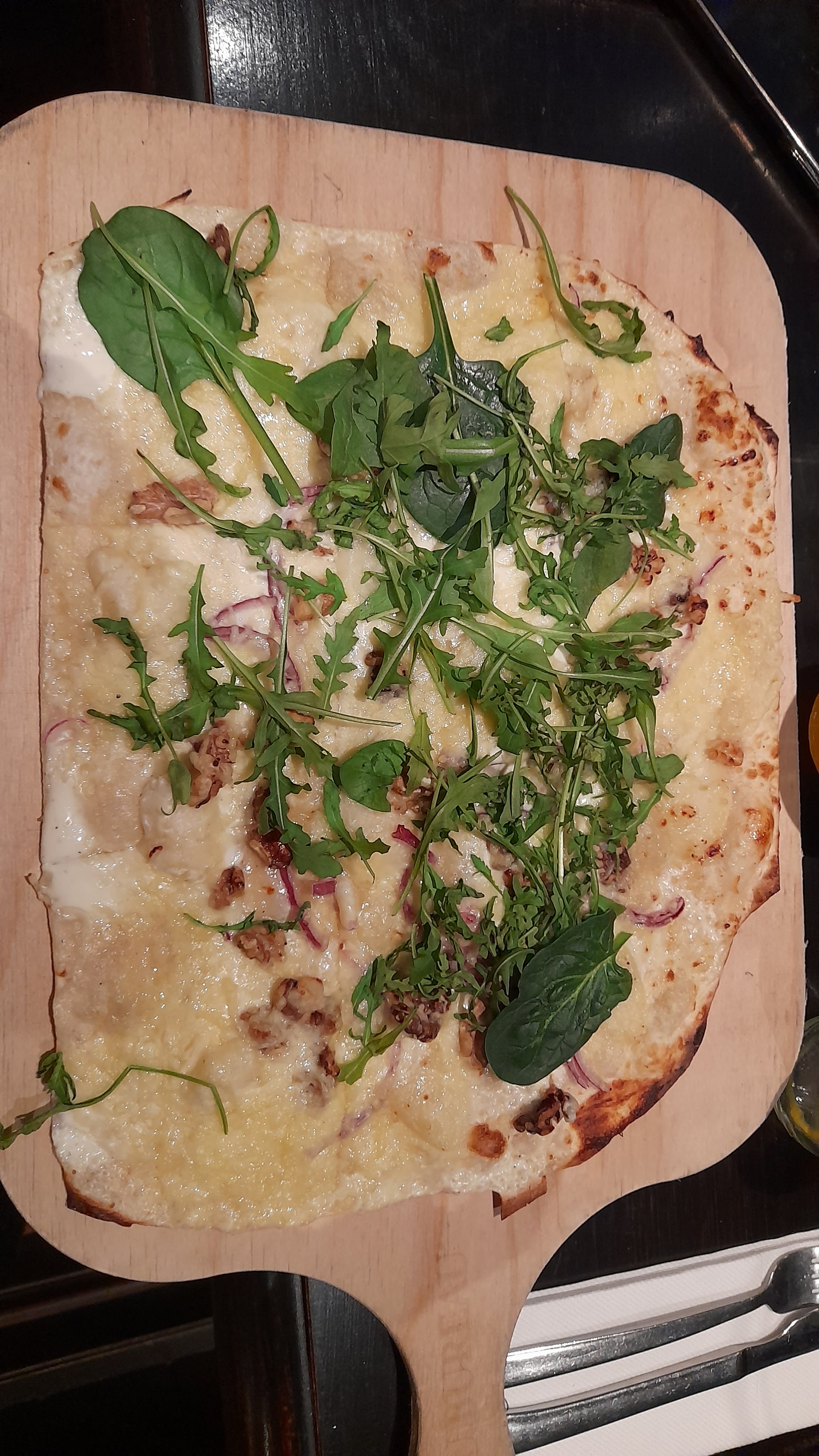 Moi qui n'ai pas l'habitude des chaînes de restauration comme celle-ci, j'ai été satisfait de ma soirée en compagnie de mes amis ! La flammekueche chèvre-miel était plutôt appétissante. Les ingrédients sont d'une qualité plus que convenable. La pâte aurait pu être un peu plus épaisse (seul petit bémol). En ce qui concerne les portions, elles étaient plus que satisfaisantes ! Mes amis ont opté pour un burger-frites et ont tous fait bonne chère. Cuisson des frites et du steak respectée pour chacun ! Cependant, la crêpe au sucre me semble un peu chère (5€90). La serveuse qui s'est occupée de notre table était très gentille et patiente ! Nous avons passé un agréable moment dans ce restaurant. Je recommande !
