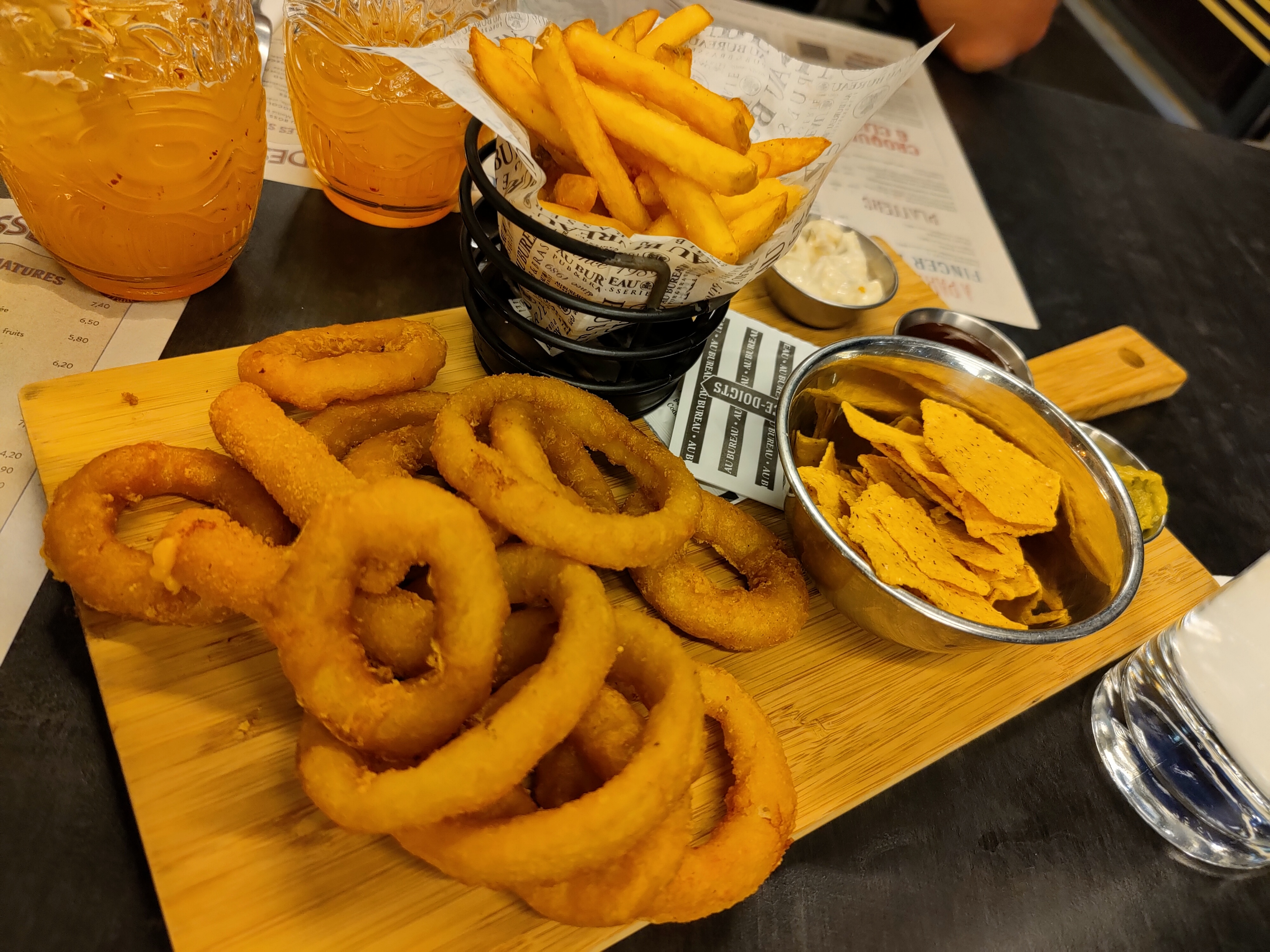 Les portions de frites sont ridicules avec le fish and chips et le tartare. Pour bien manger il faut prendre des burgers. Pas le café gourmand qui est très cher et loin d'être gourmand.