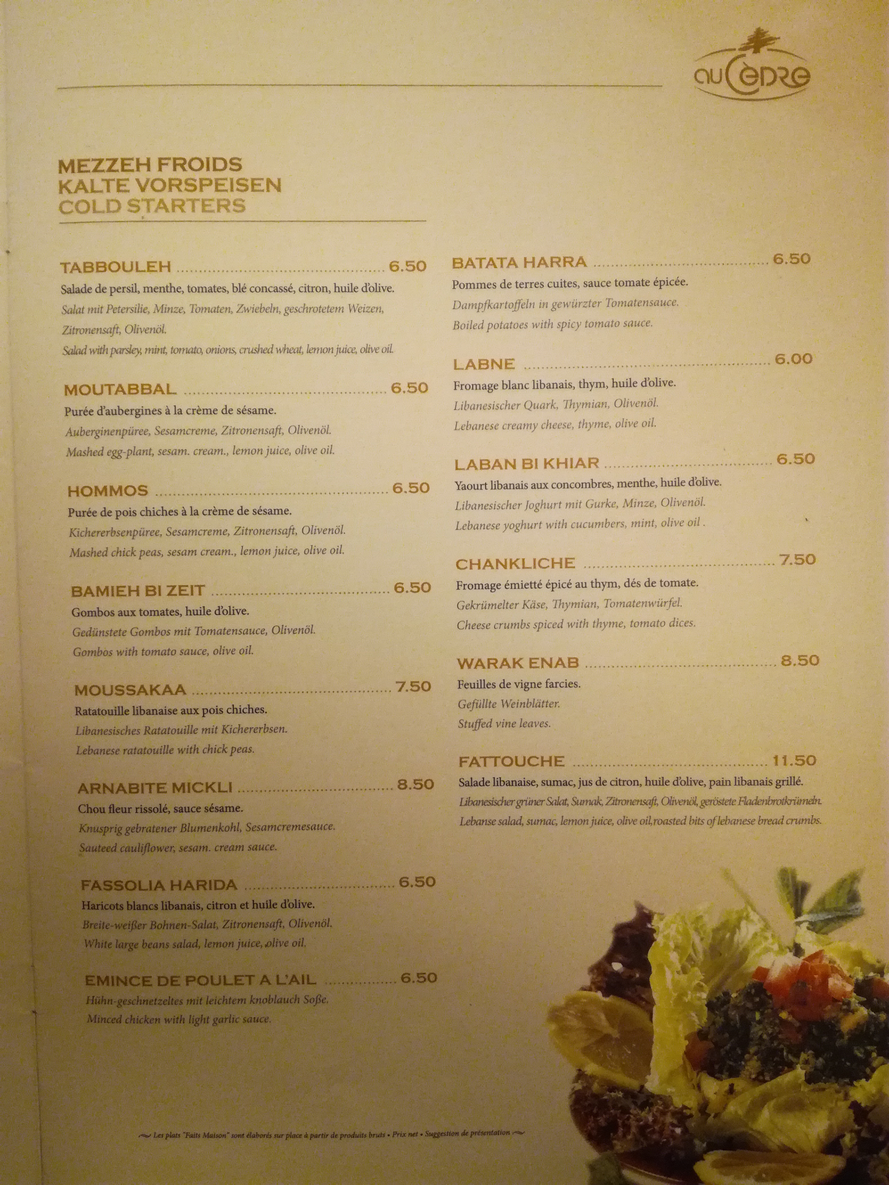 Cela faisait longtemps que je n’avais pas dîné au cèdre. La table reste une des références de la ville lorsqu’il s’agit de cuisine libanaise. L’accueil est chaleureux et sur la table c’est un festival. A refaire !