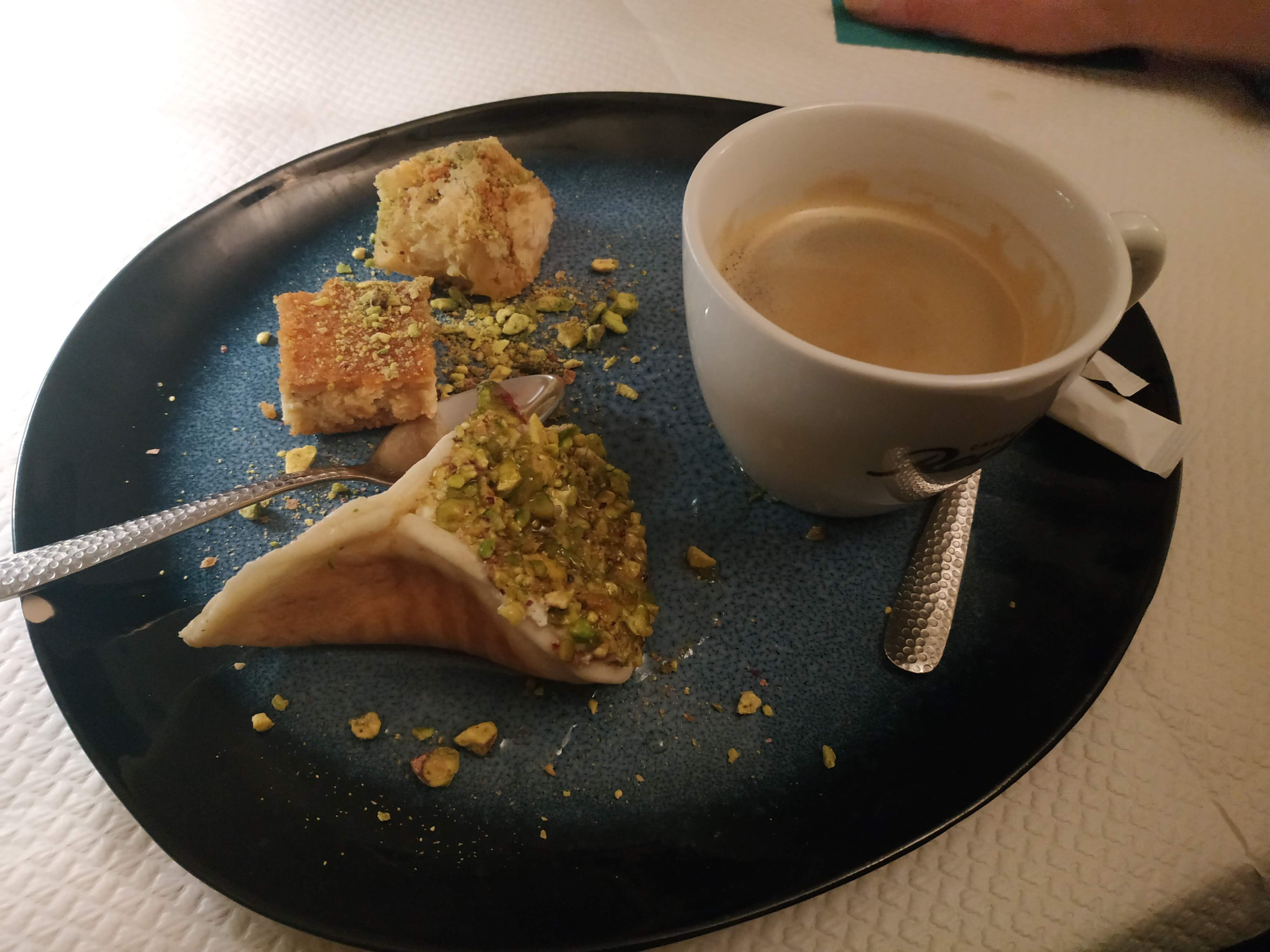 3 ème expérience de cuisine libanaise , la première fois ici ( car de passage) . Service et repas très agréable et délicieux. J'ai testé le café blanc avec mon dessert : surprenant et savoureux !😉 ... soyez gustativement curieux !