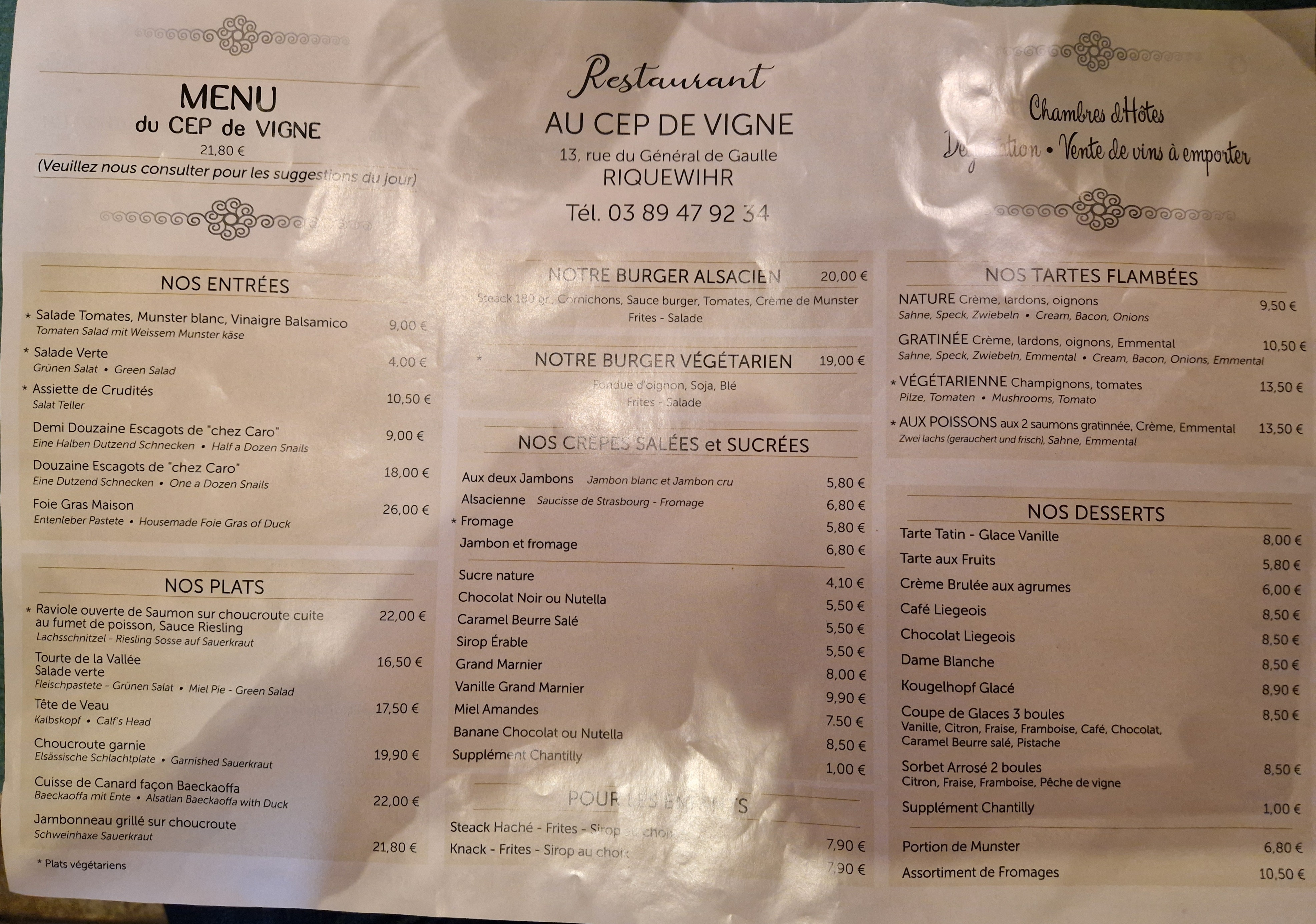 Un cadre magnifique, absolument typique, un serveur très prévenant qui nous détaille les plats au menu, que du bonheur ! Que ce soit l’entrée le plat ou le dessert, aucune fausse note. L’arrêt à prévoir lors de sa visite à Riquewihr