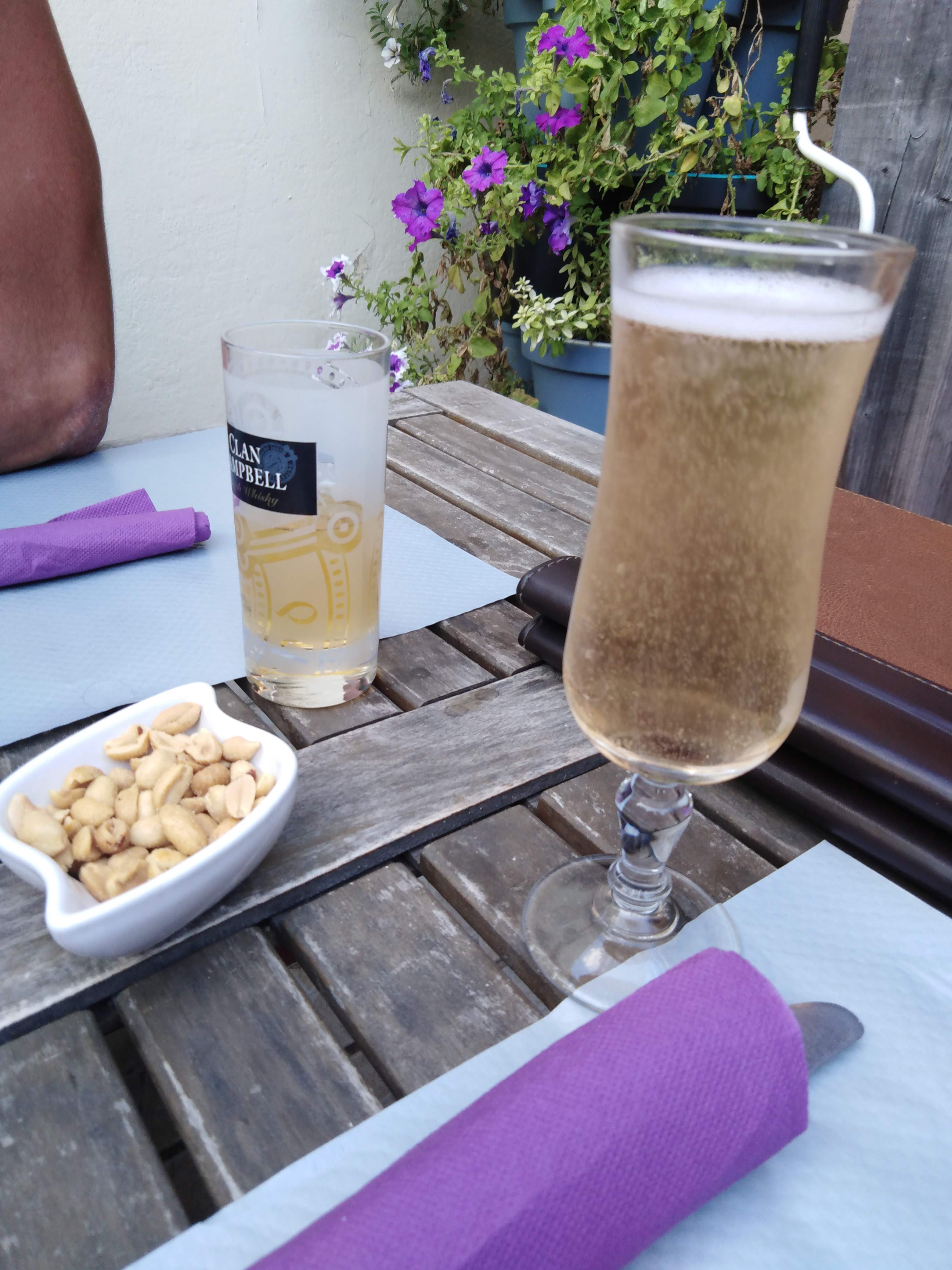 Pour la 2ème année de suite : repas du 13 juillet pour voir le feu du balcon. Thème chtit. Poulet au maroilles un régal ! Merci patronne !!