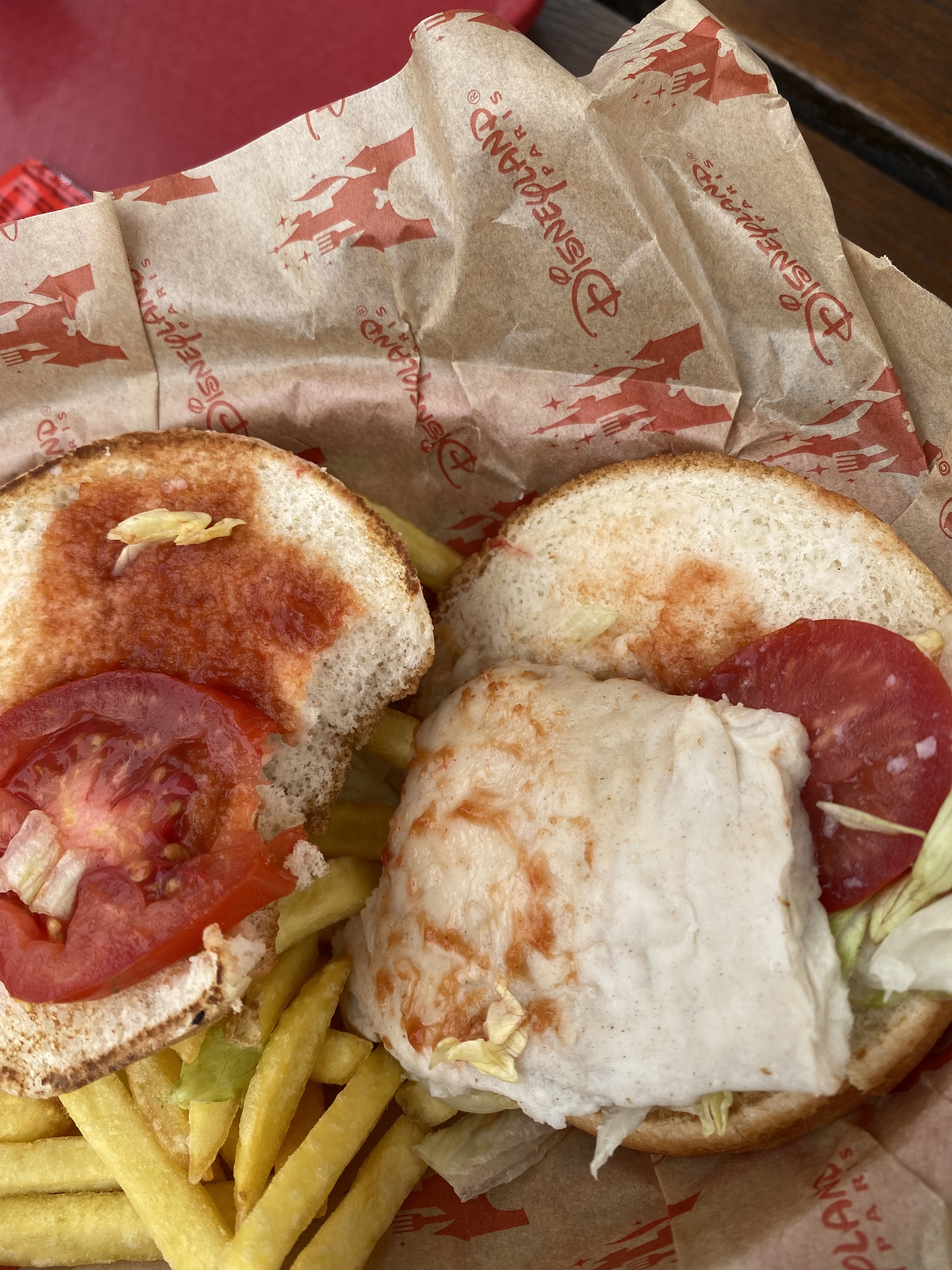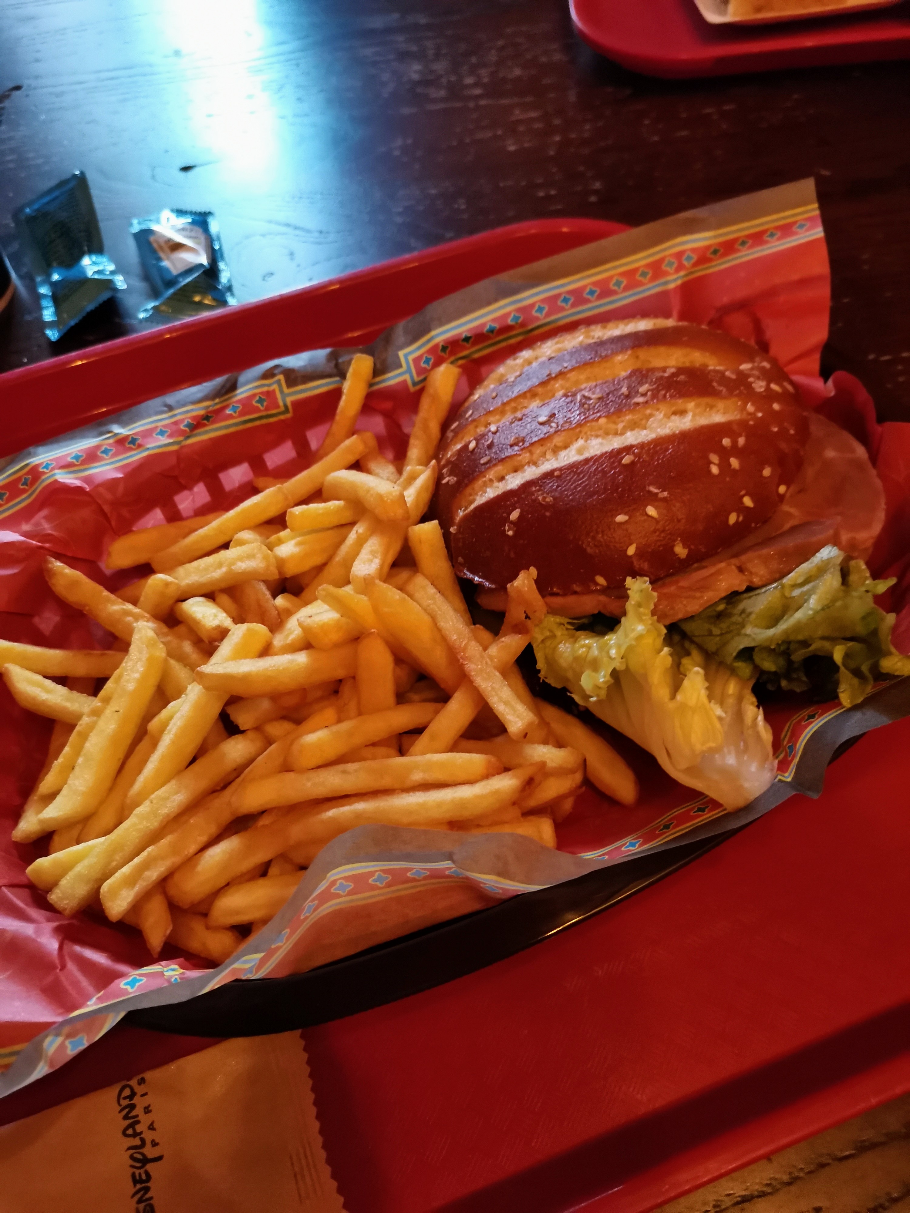 Pour manger à Disney, c'est plutôt compliqué quand on a pas pensé à réserver notre restaurant 3 mois à l'avance. Si vous êtes dans le même cas, allez manger au chalet de la marionnette ! C'est l'équivalent d'un McDo mais en mieux ! Il y a un menu pour 20 euros chacun (burger, boisson et dessert).