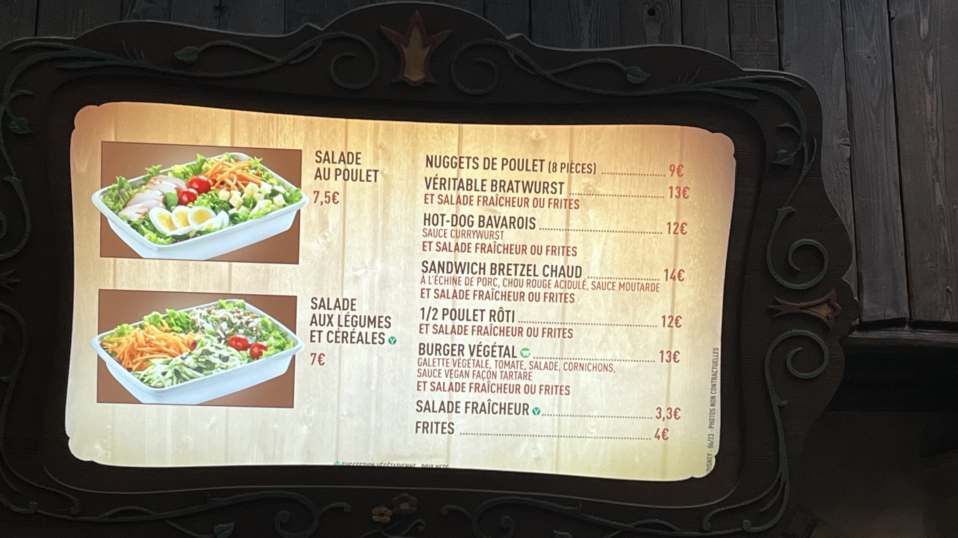 Un incontournable pour manger à un tarif plus ou moins correct dans le parc. Comptez 4 menus adultes aux choix (plat + boisson + dessert) allant jusqu'à 16.90€ pour un jaret de porc avec choucroute et frites, 1 boisson au choix et un apfelstruddel en dessert. Il y a possibilité de commander des snacking ou des menus enfants ... J'y mange à chacune de mes visites au parc.