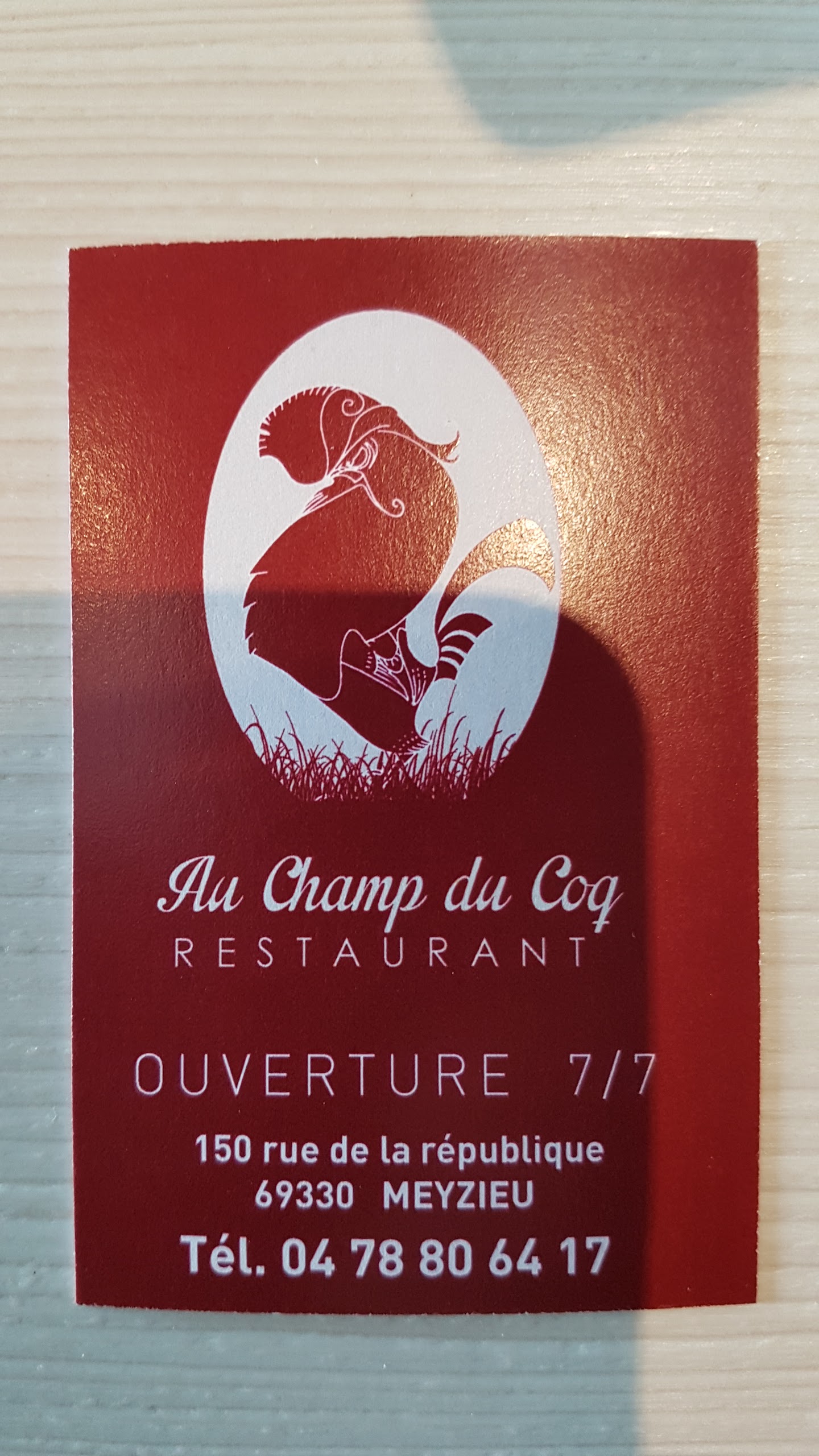 Voici toutes les informations sur le Restaurant Au Champ Du Coq qui ce trouve au 150 Rue de la République, 69330 Meyzieu (69). Sur cette fiche vous trouverez les photos, l'adresse, les horaires d'ouverture, le numero de téléphone et les avis clients.Vous pouvez églement rédiger un avis si vous le souhaitez en bas de page.