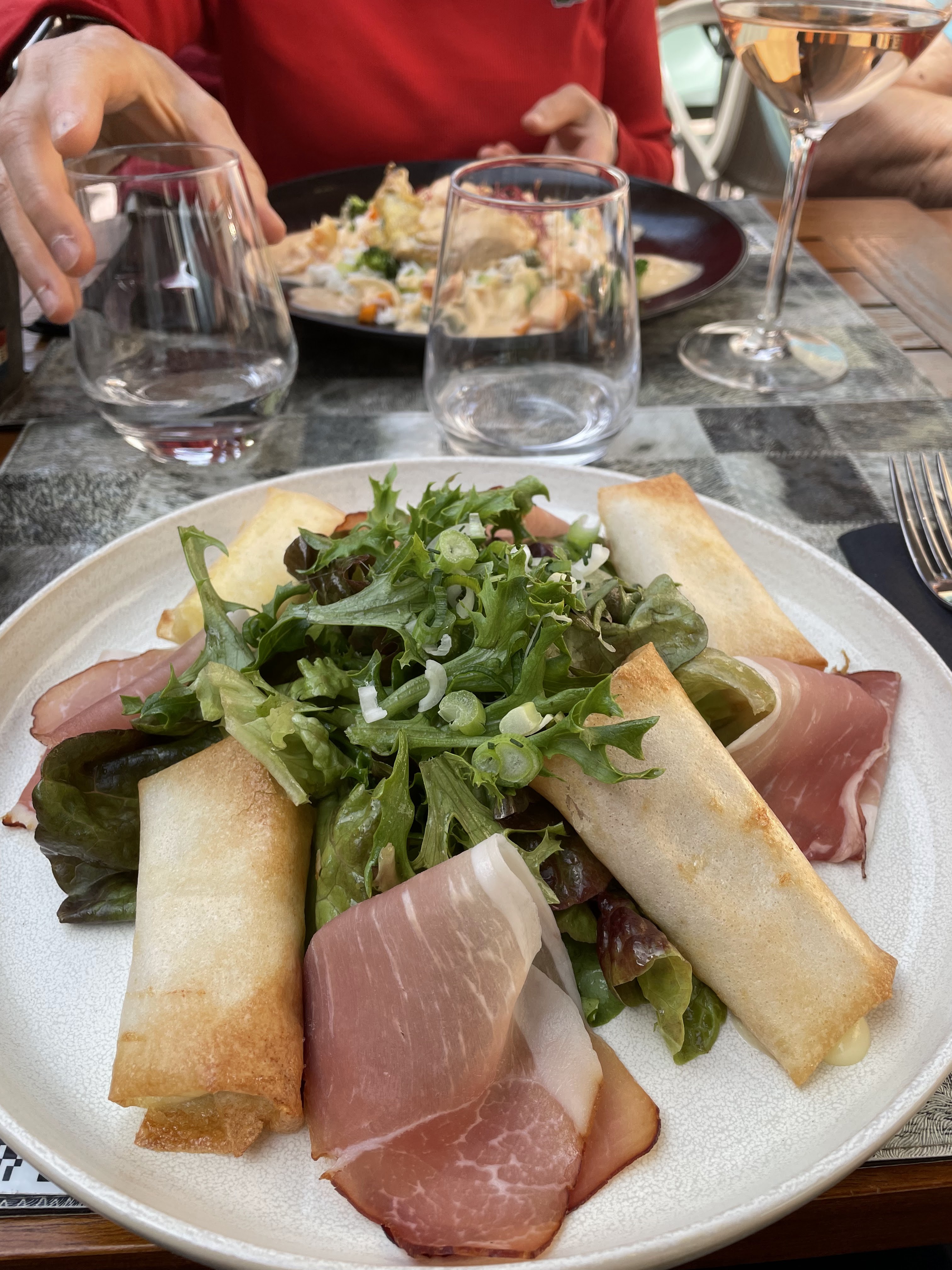 Le restaurant est dans une petite rue assez tranquille, c’est agréable de venir y déjeuner. Au calme. Le service est rapide et agréable. La salade, quant à elle, était généreuse et bien riche. Composée de jambon et de nems au reblochon. La tarte tatin était un peu sucrée mais bonne. J’étais un peu moins fan de la glace a la vanille qui semblait un peu vieille. Les prix sont assez corrects.