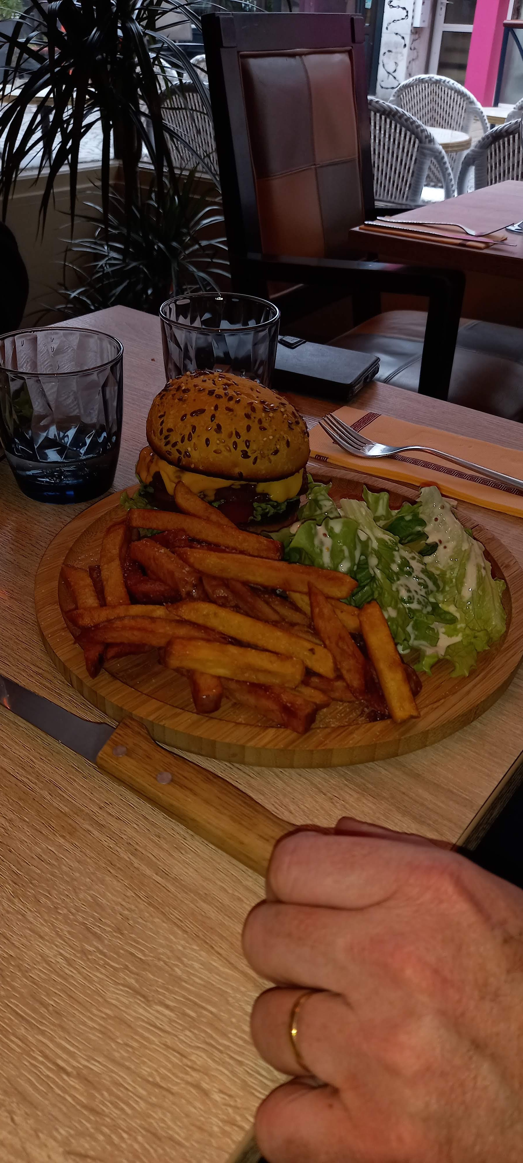 Tres bon repas. Le pain du hamburger trop bon Personnel tres agreable A trés bientot
